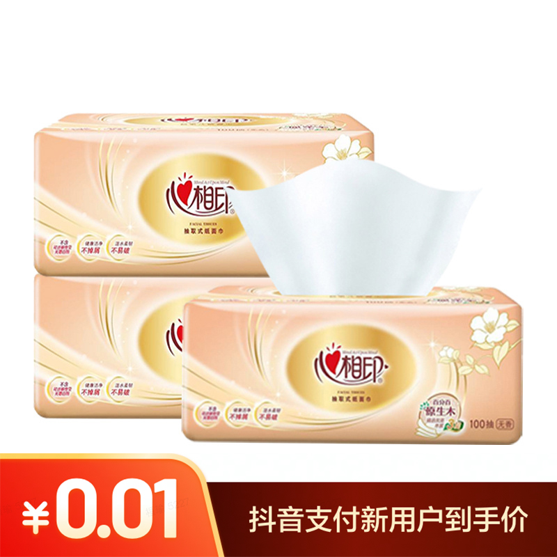 【抖音支付新客专享】心相印抽纸100抽*3包经典纸面巾家用卫生纸抽