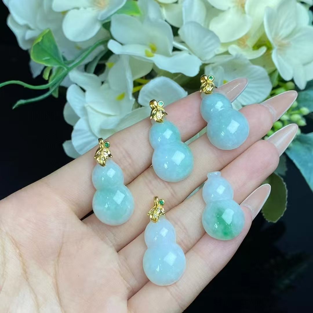 缅甸翡翠A货冰种飘花葫芦玉坠