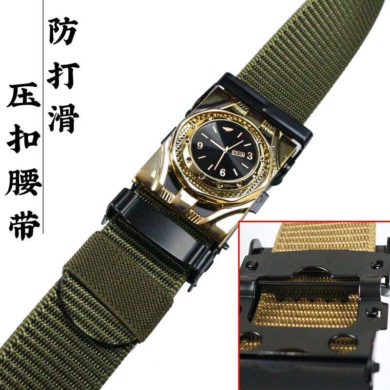平滑扣腰带男士压扣皮带帆布尼龙混编百搭休闲工装韩版学生青年潮