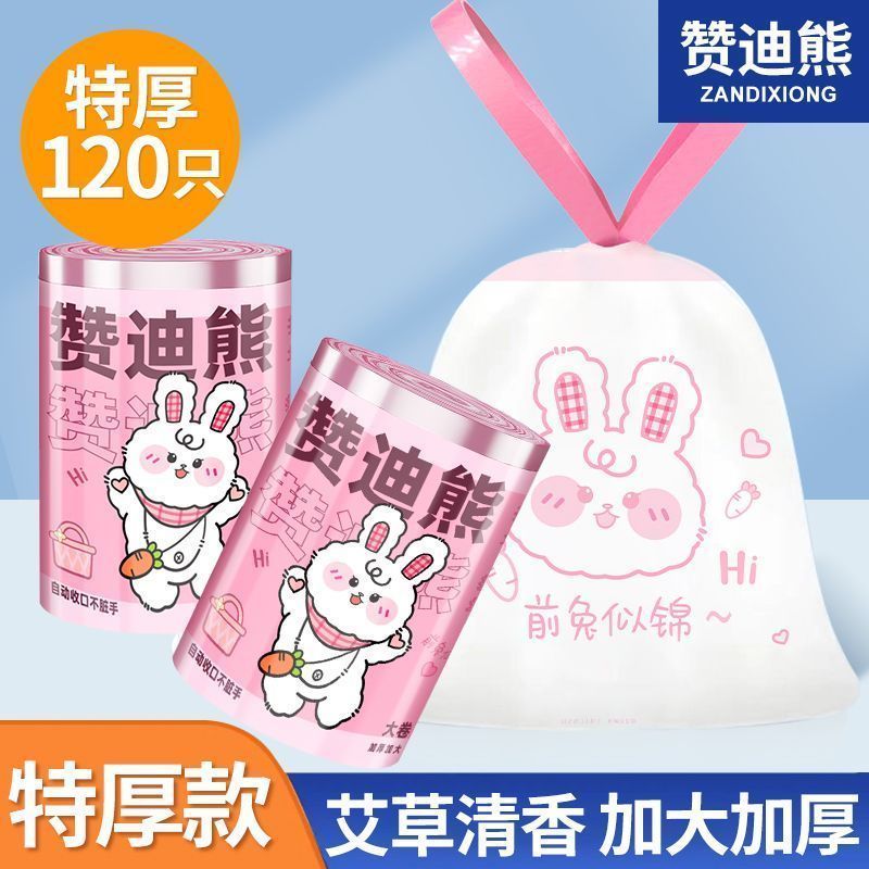 【超大卷120只】赞迪熊垃圾袋加厚新款印花抽绳家用自动收口手提式