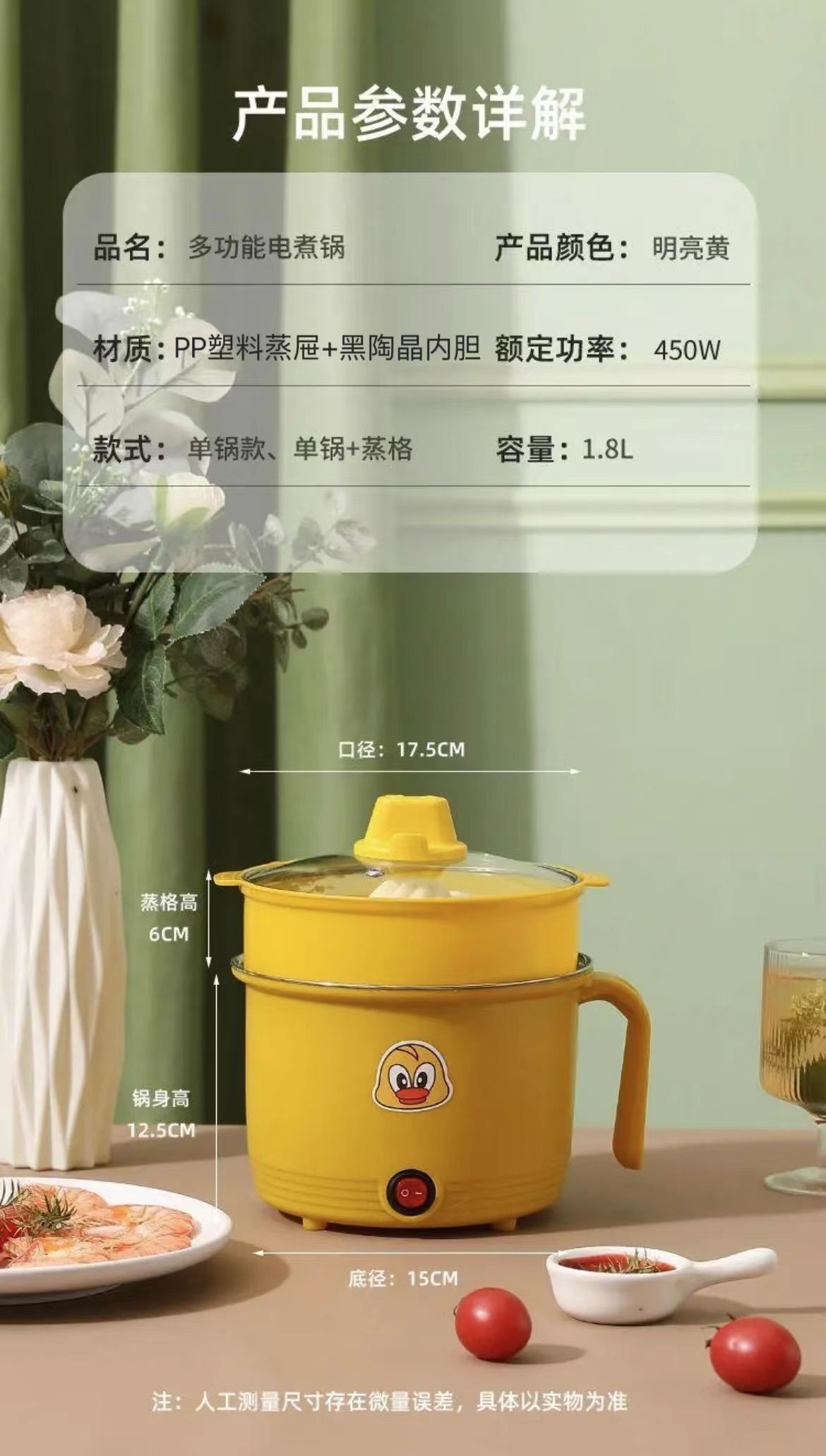 1.8L小黄鸭不粘+塑料蒸笼