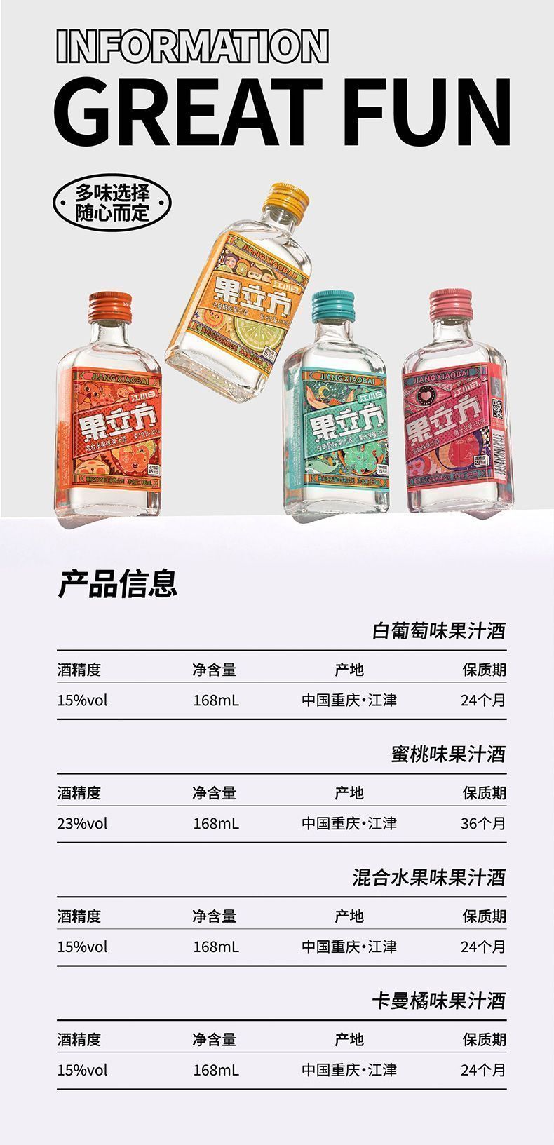 果立方微醺低度4种口味168ml组合装果香浓郁国产果酒拍1发12聚会
