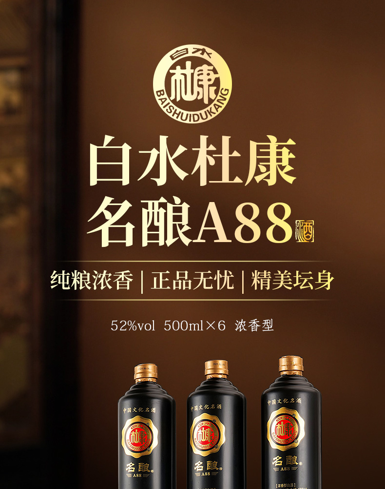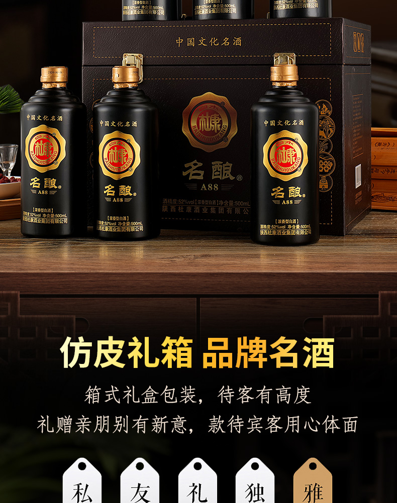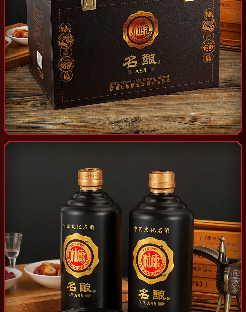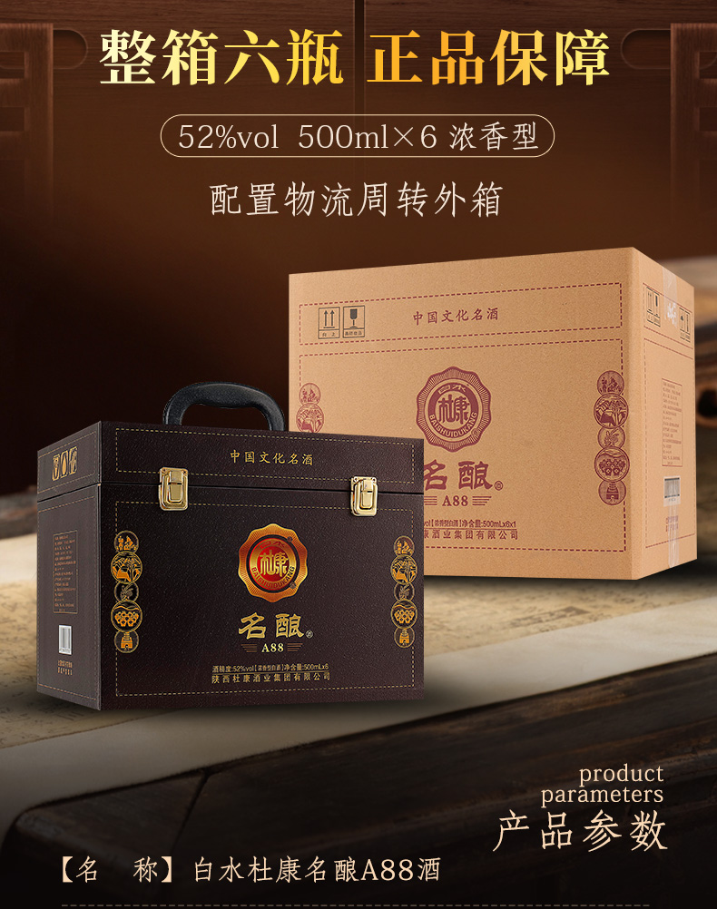 500ml*6瓶(白水杜康名酿A88手提装仿皮纸箱整箱)