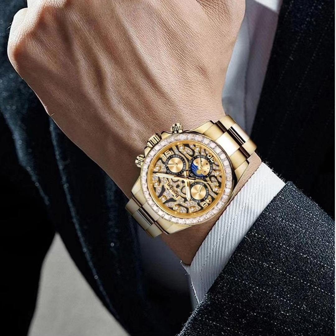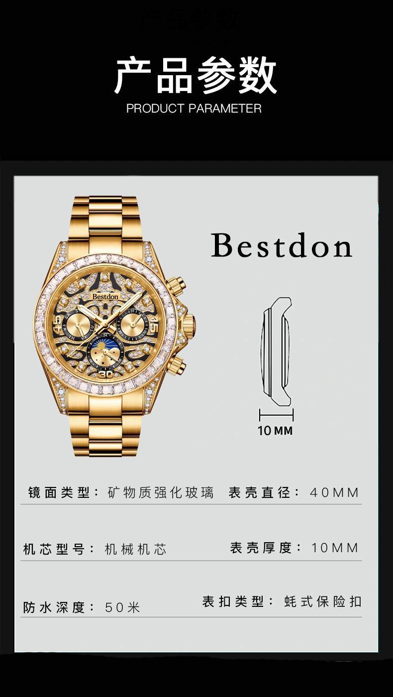 邦顿老虎迪全自动机械男表防水多功能男士手表镶钻奢华71151XYC