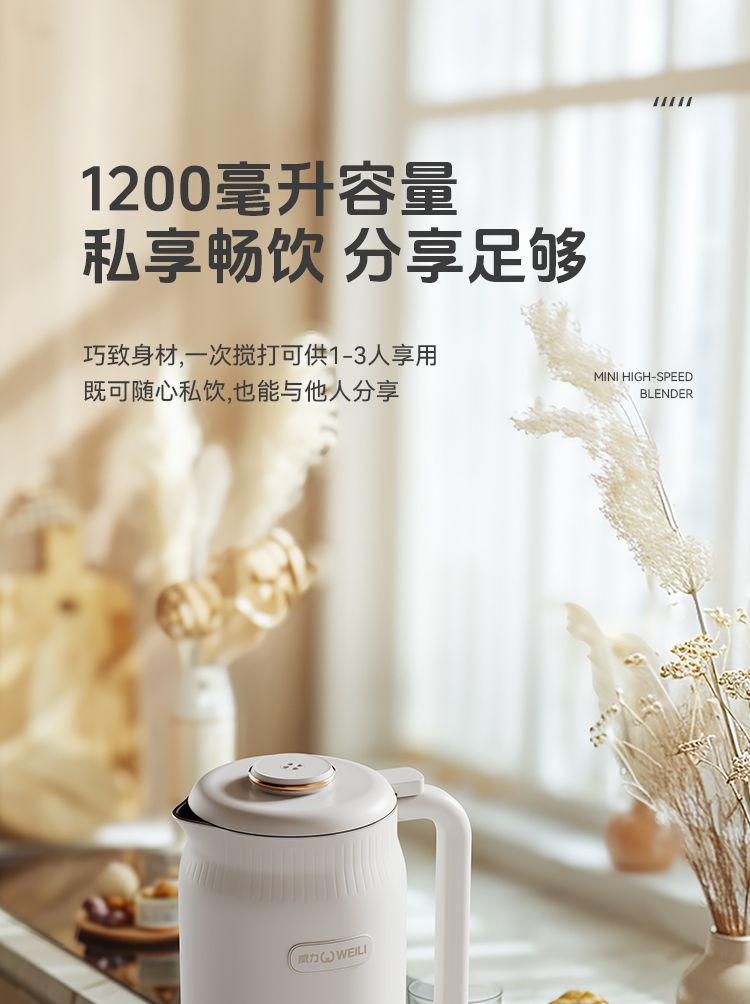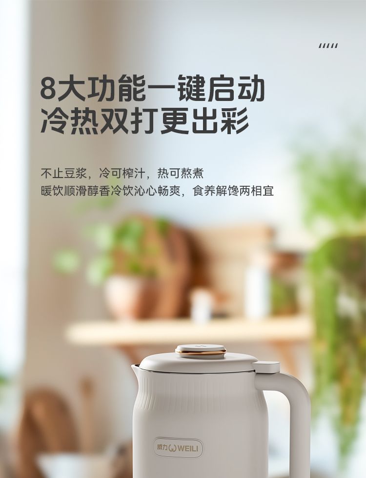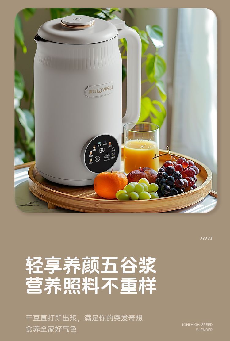 威力家用破壁豆浆机多功能全自动小便携免滤触控保温预约