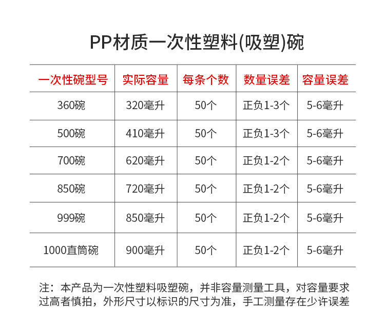 【50只11.88元】家用塑料碗居家聚餐野外烧烤透明圆形加厚一次性碗餐