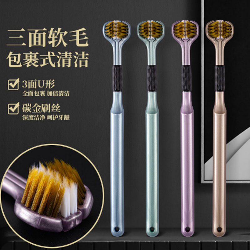 【福利9.9元4支】情侣牙刷家用细丝软毛深层清洁三面刷头牙刷成人款