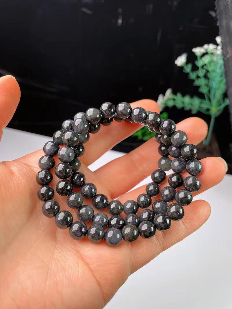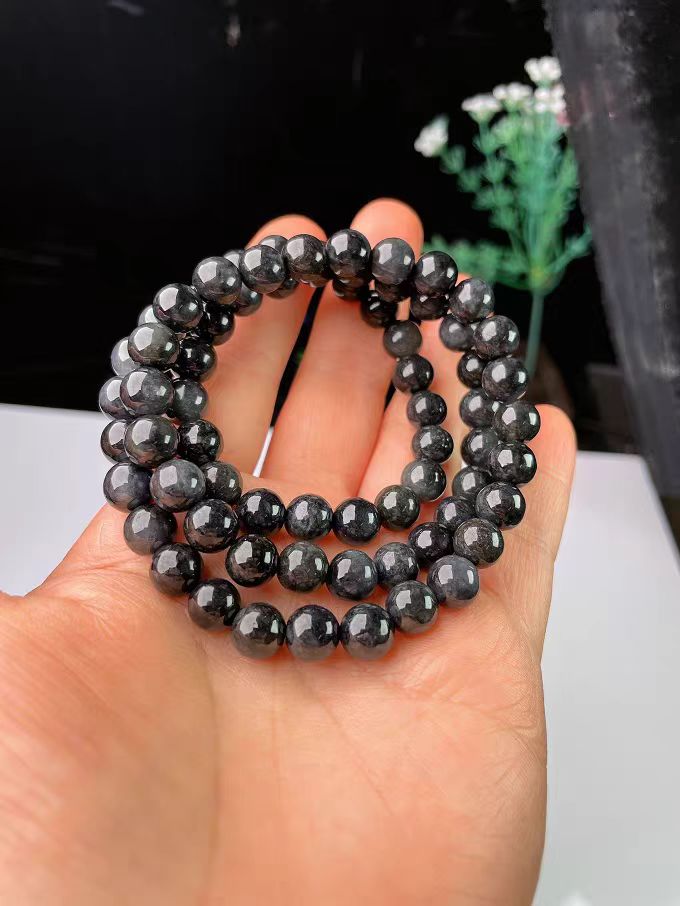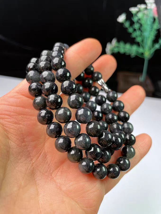 正品缅甸天然A货翡翠乌鸡黑色手串