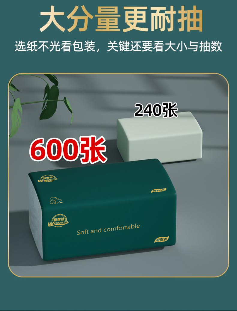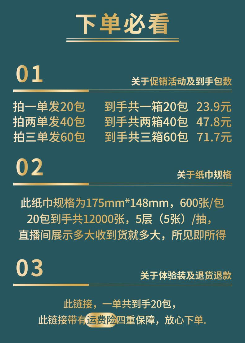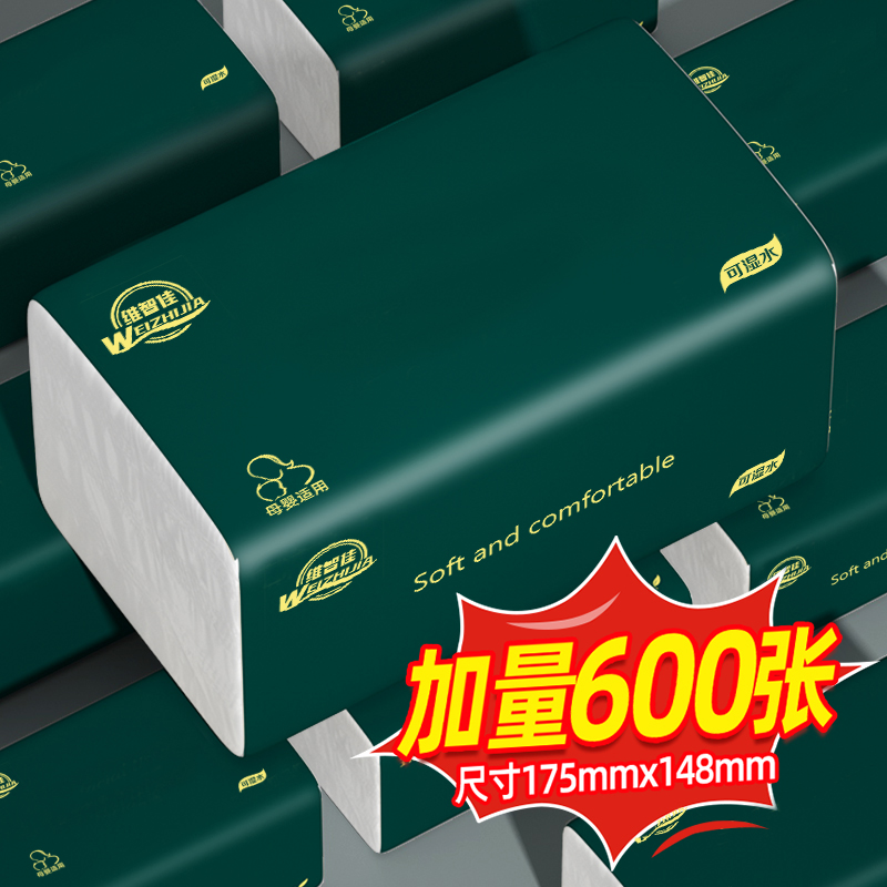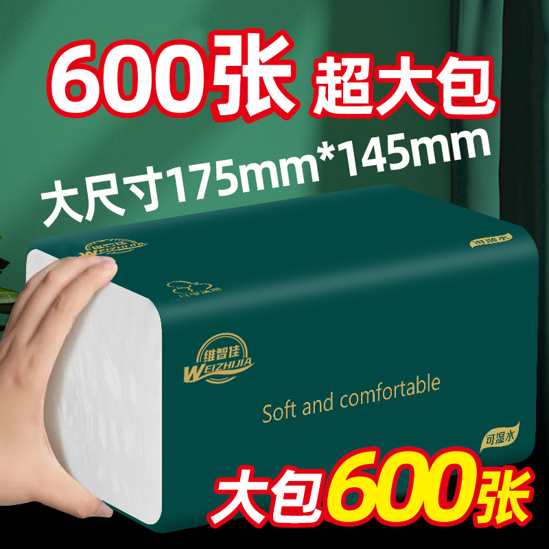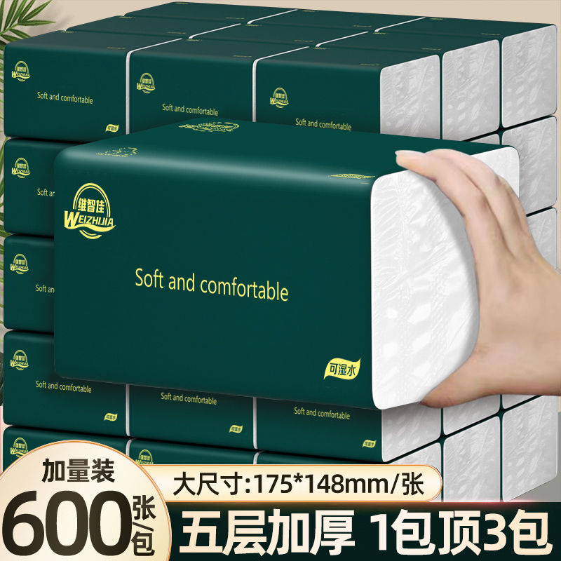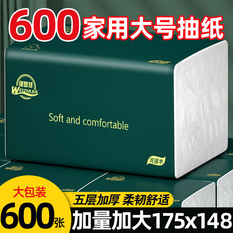 [600张加量装]20包整箱大号抽纸五层加厚家用干湿两用家用面巾纸