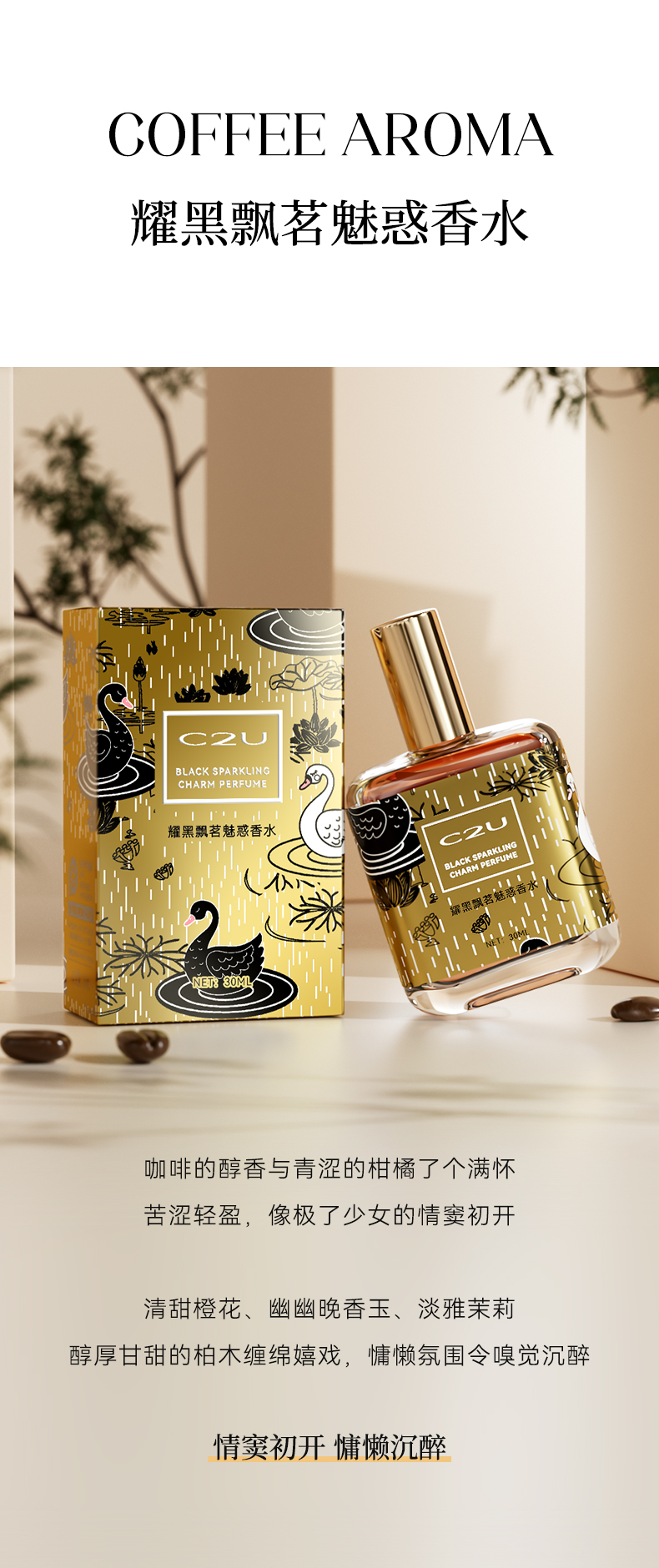 【S】法国C2U耀黑飘茗魅惑调香师香水 清新淡香学生中性男士礼盒装