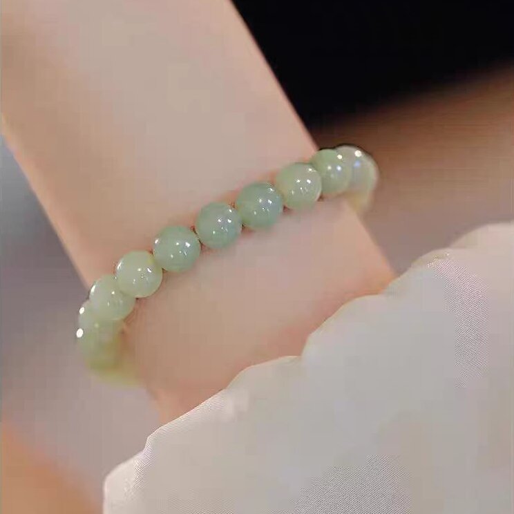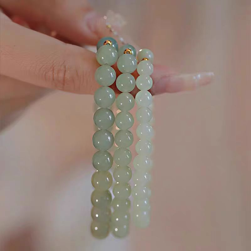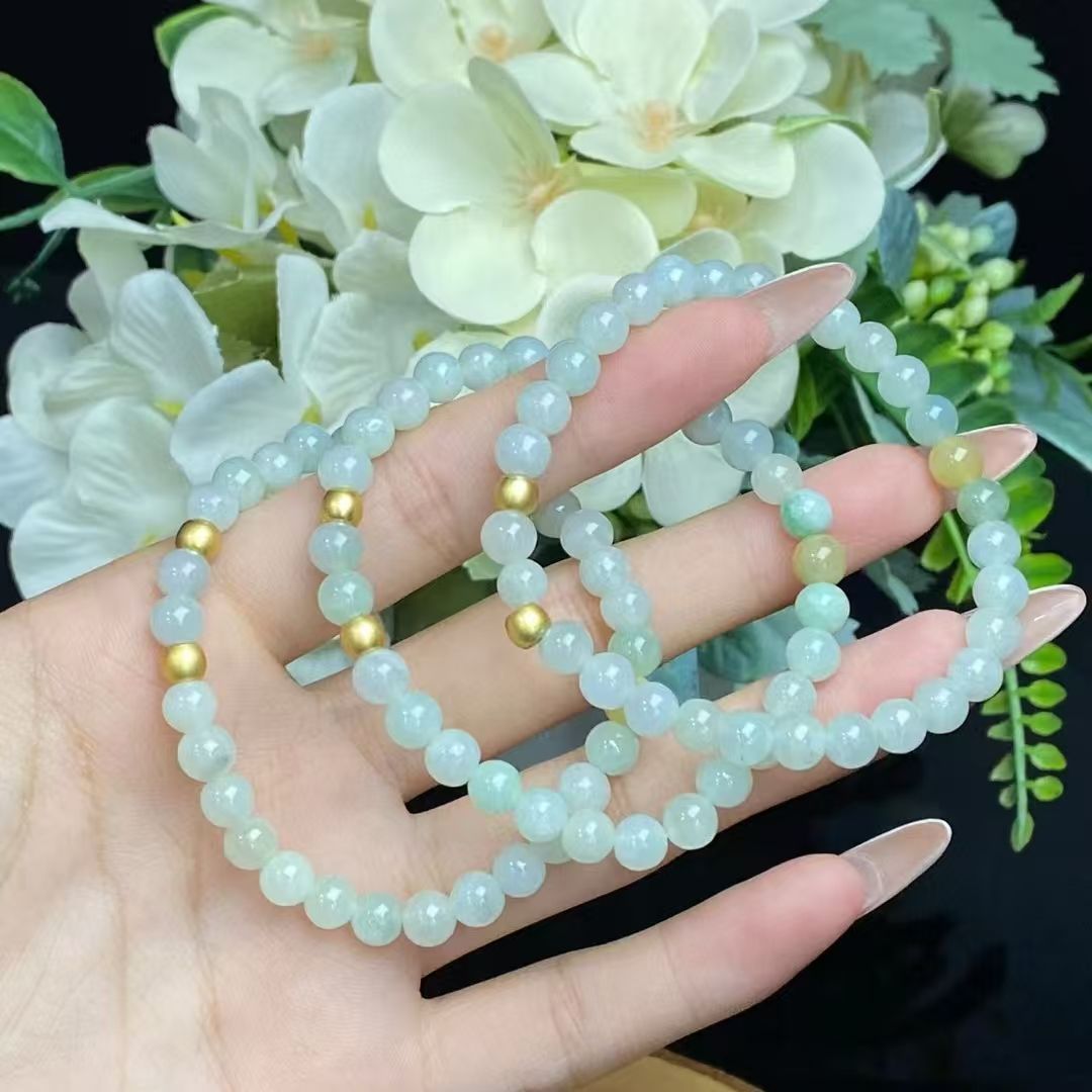 和田玉手串女款冰晴水素圈足金珠轻奢小众精致青白玉手链