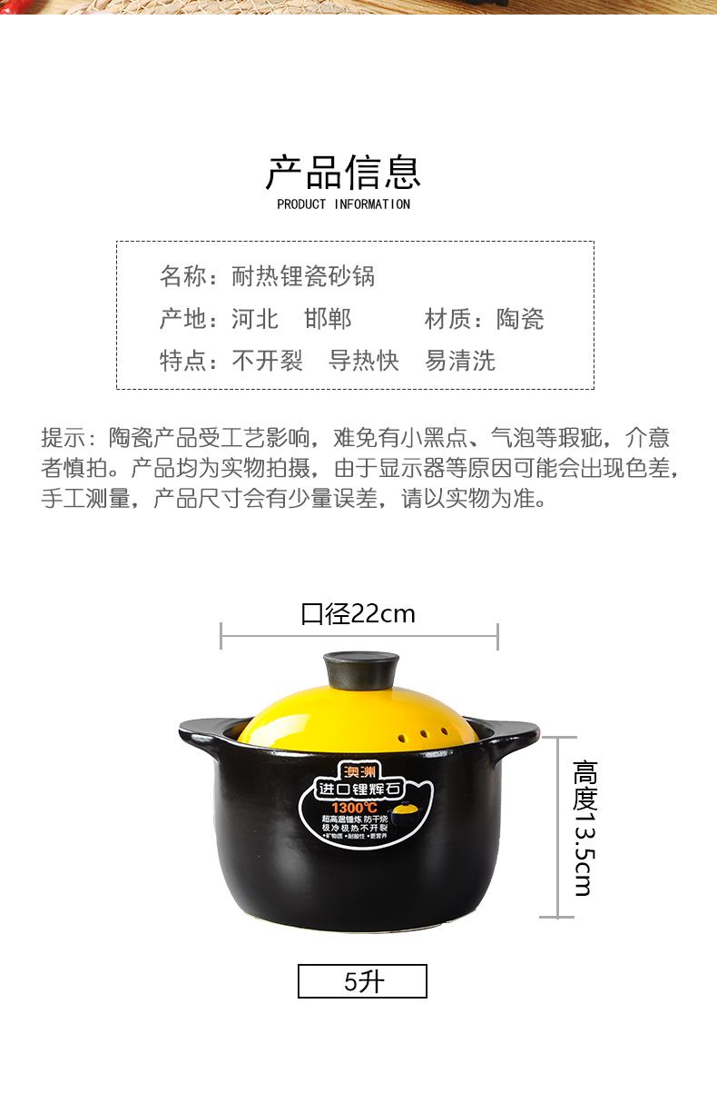5.0L砂锅家用耐干烧陶瓷煲汤炖汤煮粥燃气灶电陶炉通用汤锅