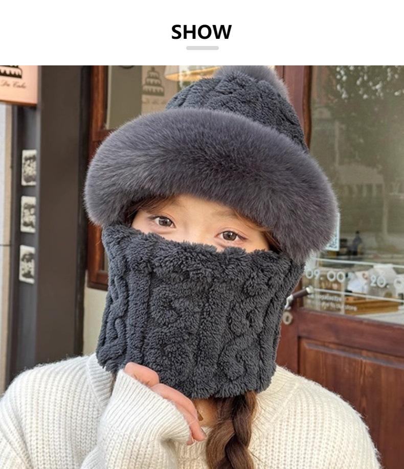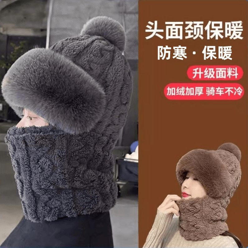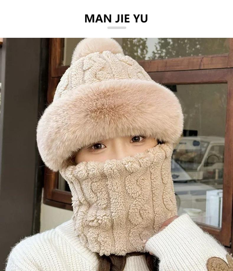 【 秋冬季加厚骑行防风围脖口罩一体护耳保暖帽针织百搭学生女生时尚 】