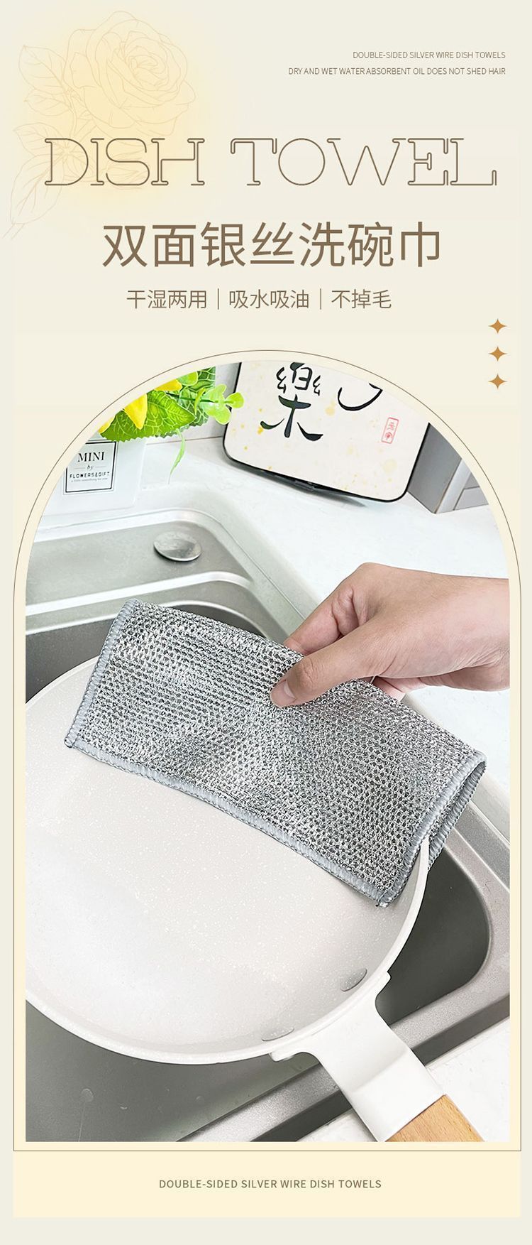 【9.9元/10条】厨房钢丝洗碗布耐磨不伤漆面家用洗碗不掉毛银丝抹布
