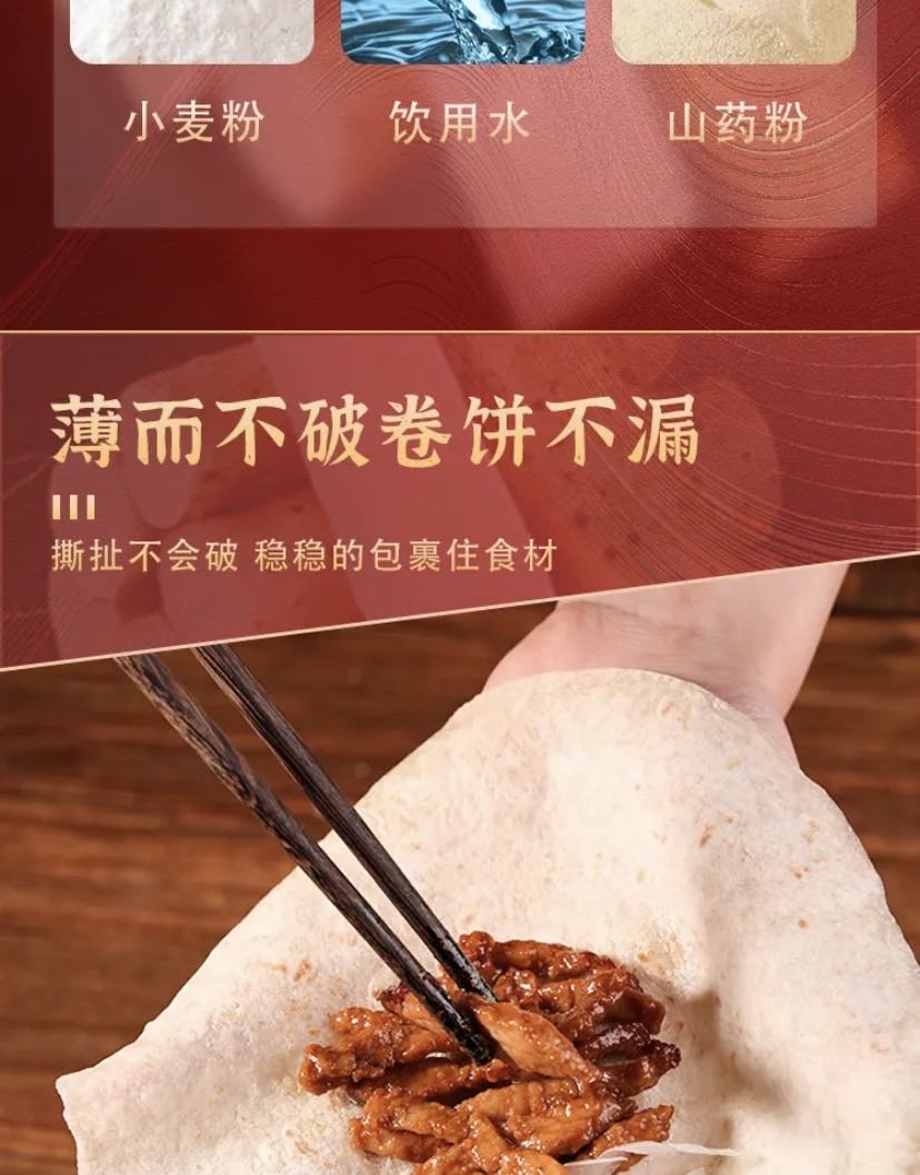 吕丫丫【19.9元50张】河南无油山药春饼皮薄饼筋道早餐饼手抓饼开袋