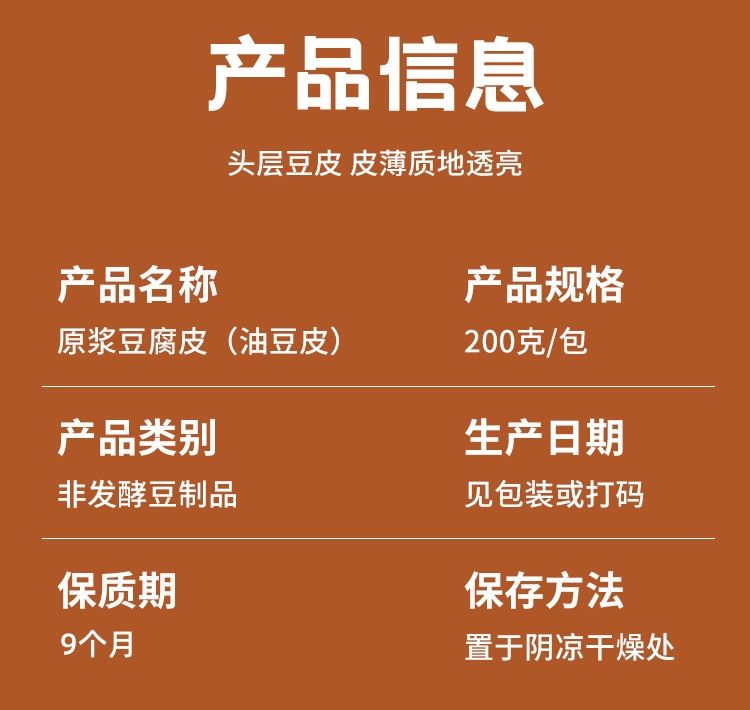 豆产头层豆腐皮油豆皮薄腐皮响铃卷皮肉卷皮馅料皮辣条200g约35张