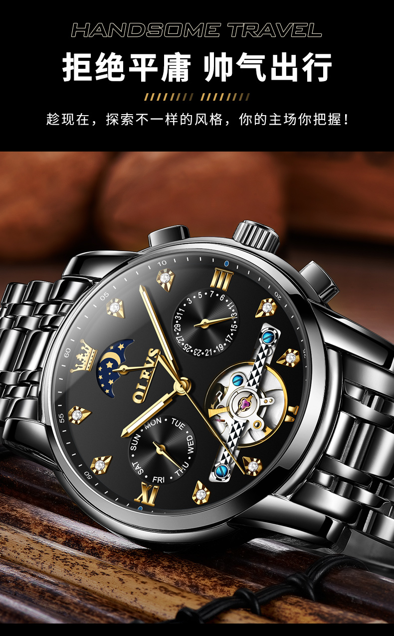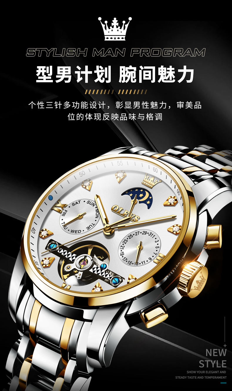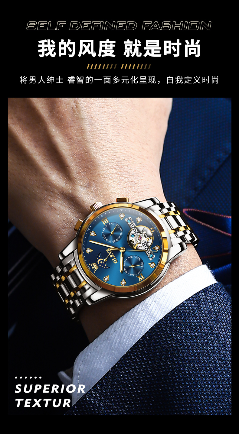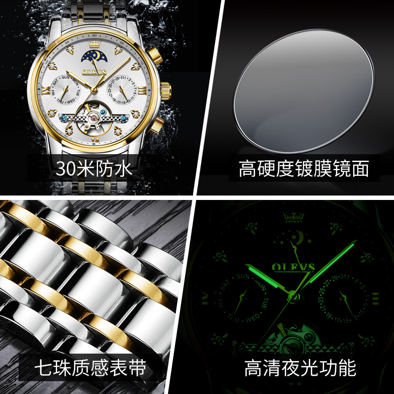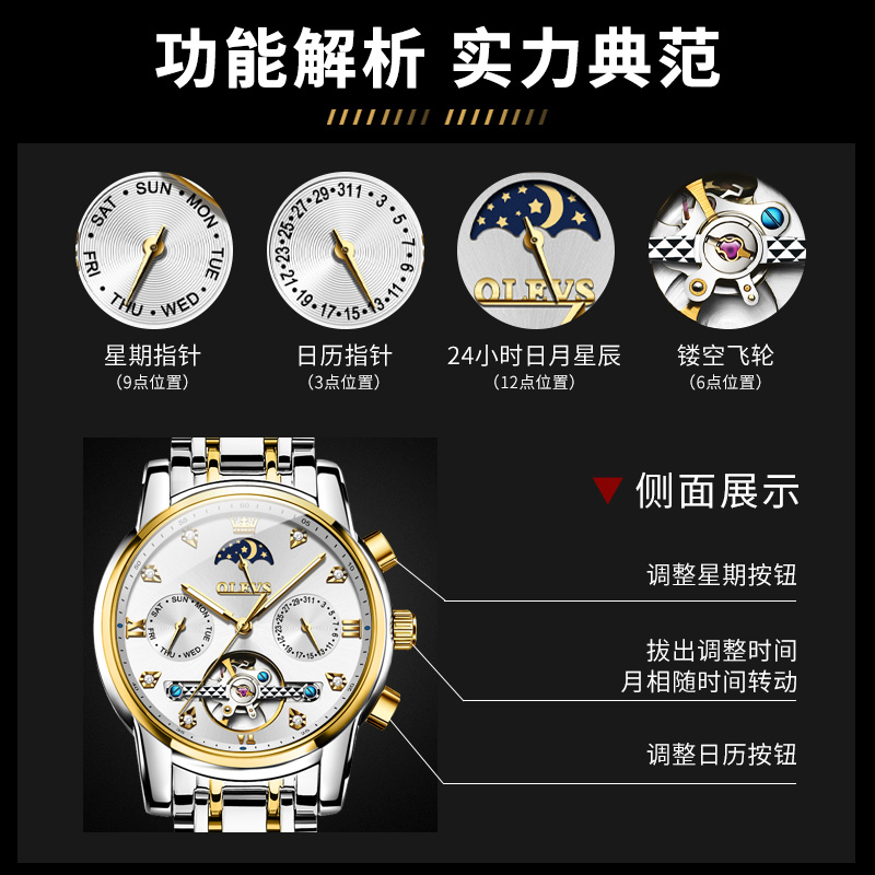 新款经典品牌男款时尚镂空商务全自动机械男士手表潮流防水男款