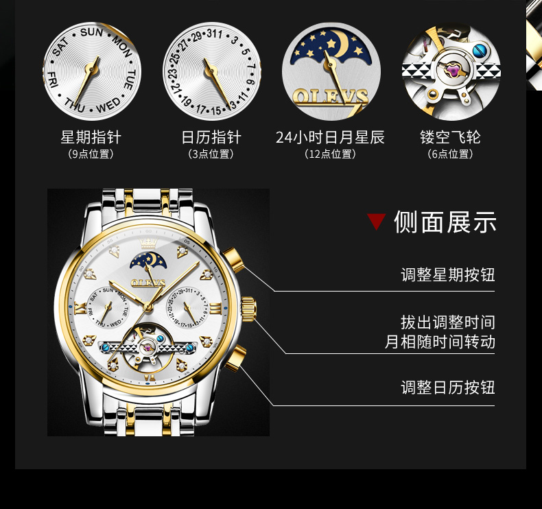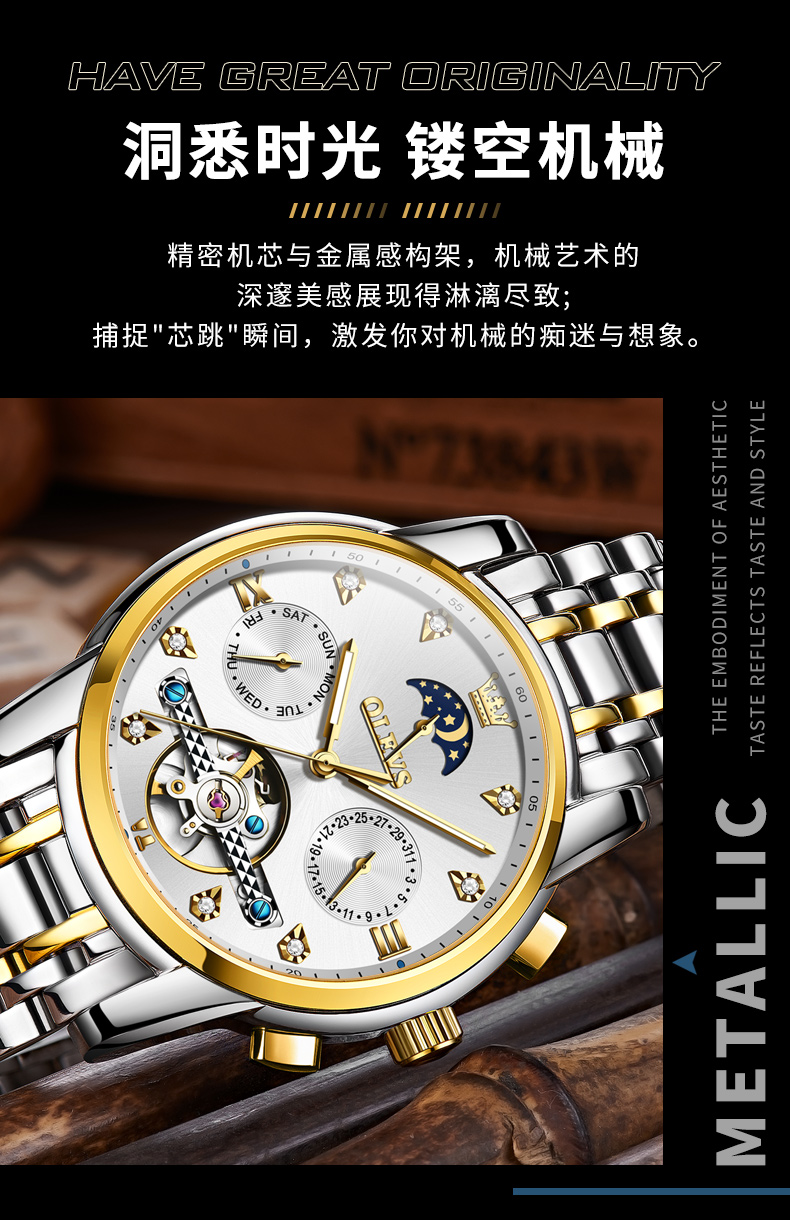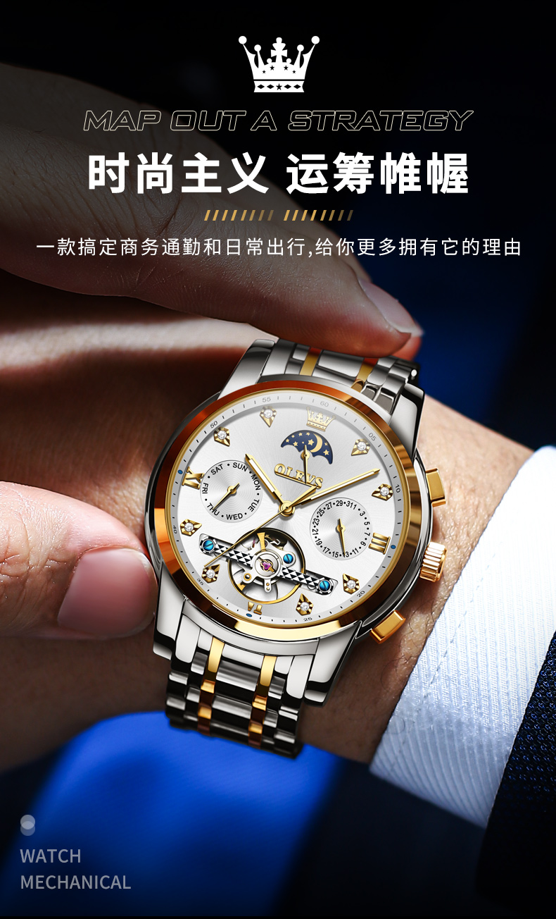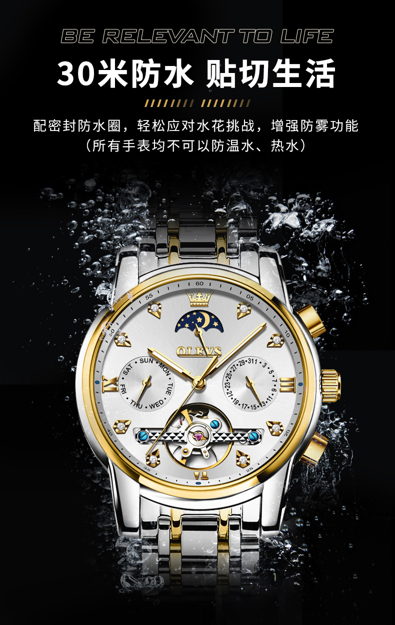 新款经典品牌男款时尚镂空商务全自动机械男士手表潮流防水男款