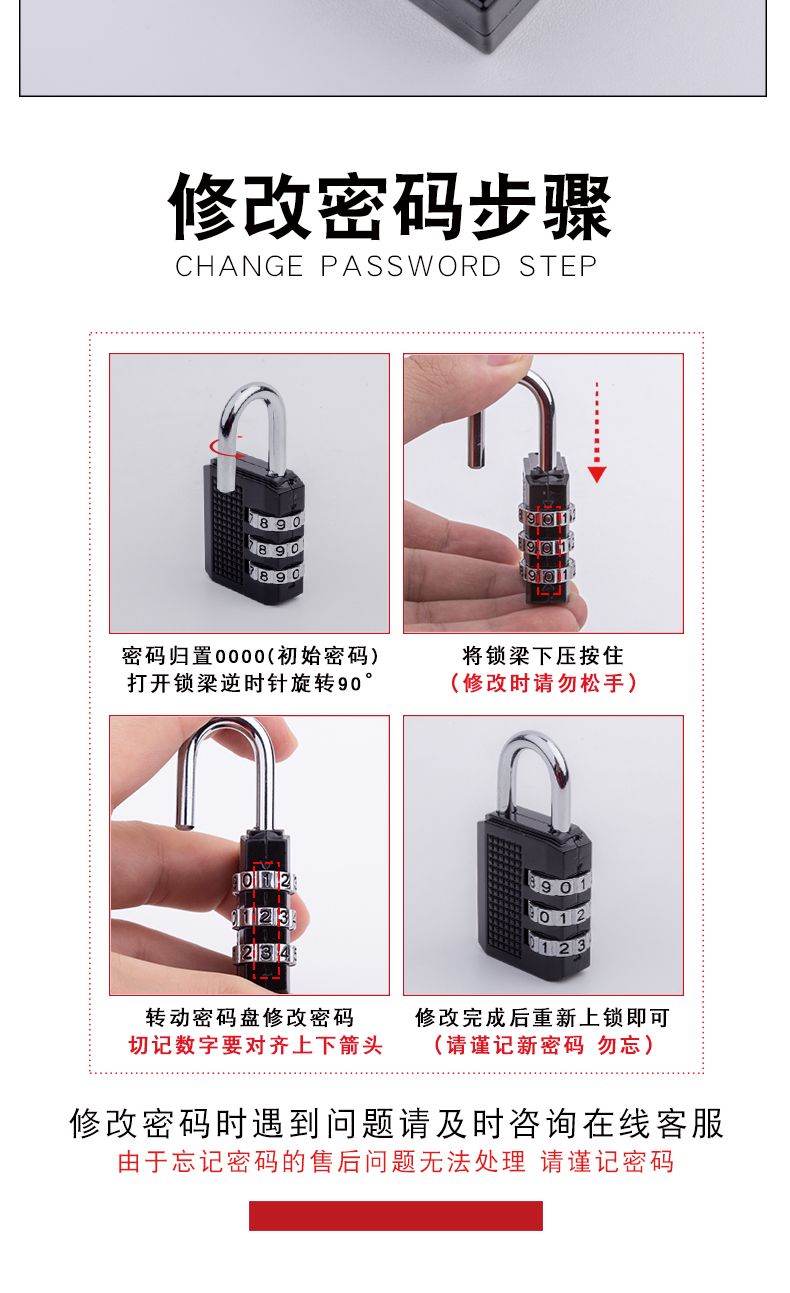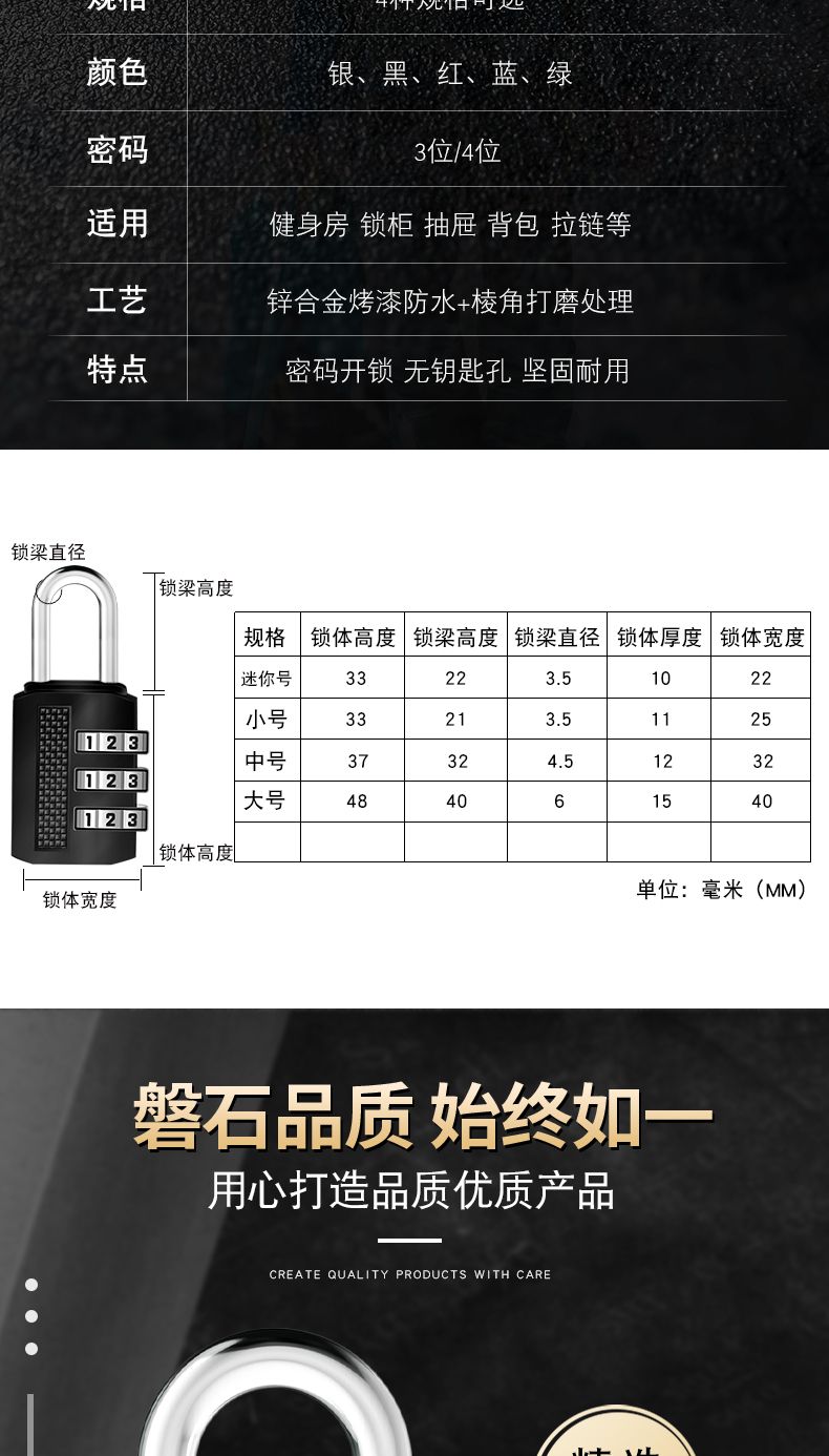 金属密码大小学生宿舍柜子门锁健身房行李箱抽屉锁防锈防盗小锁头