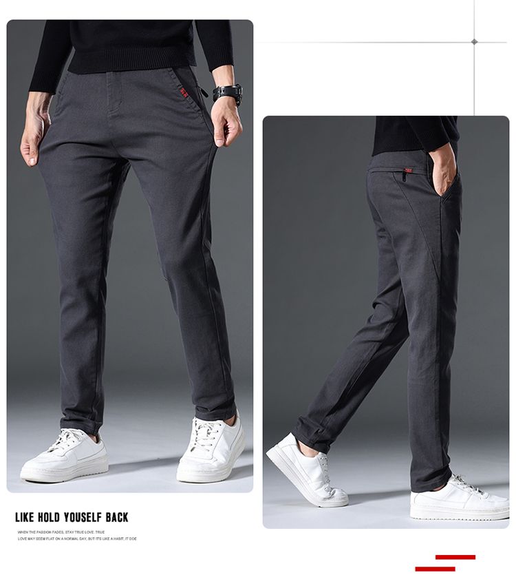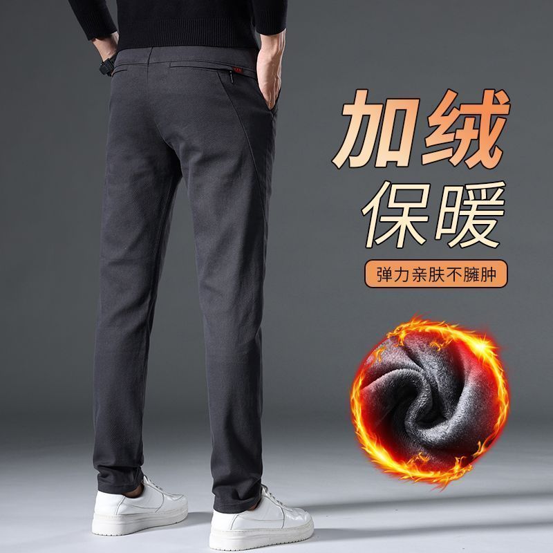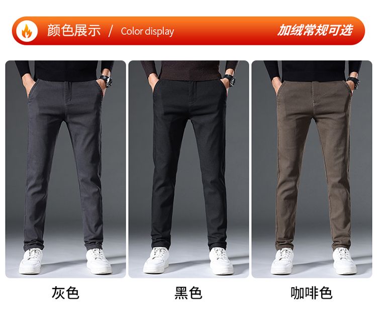 2023休闲裤男秋冬季新款直筒修身百搭长裤子男轻商务男裤加绒可选