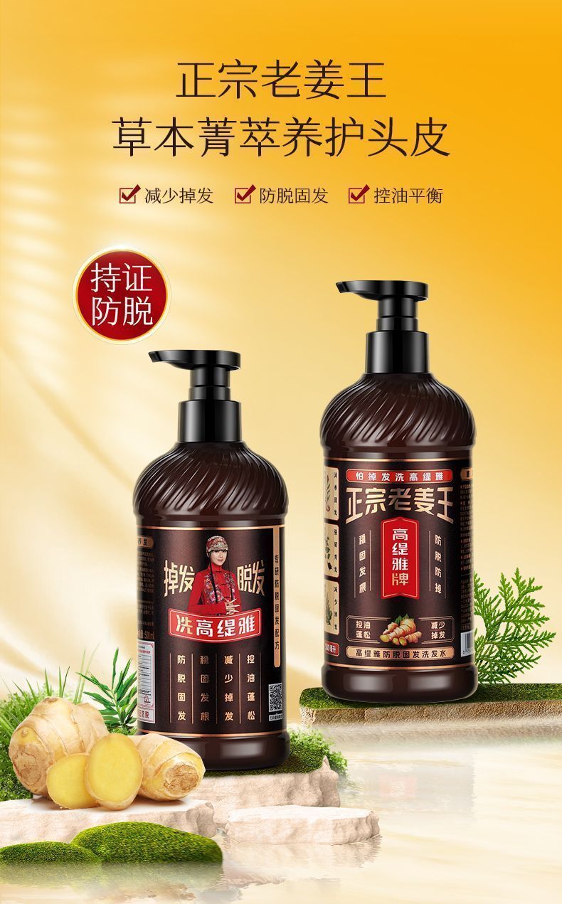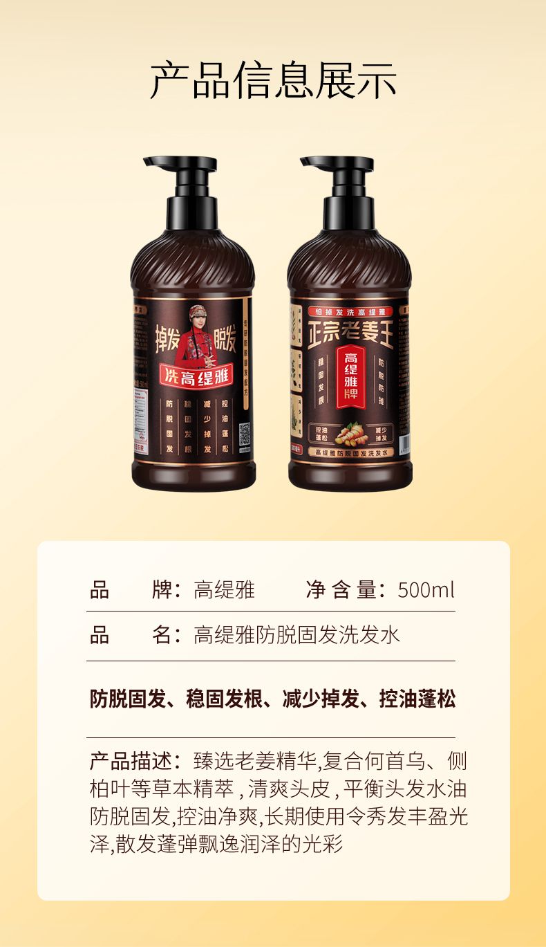 【含赠品到手四瓶】高缇雅防脱洗发水护发素套装老姜王控油去屑套装