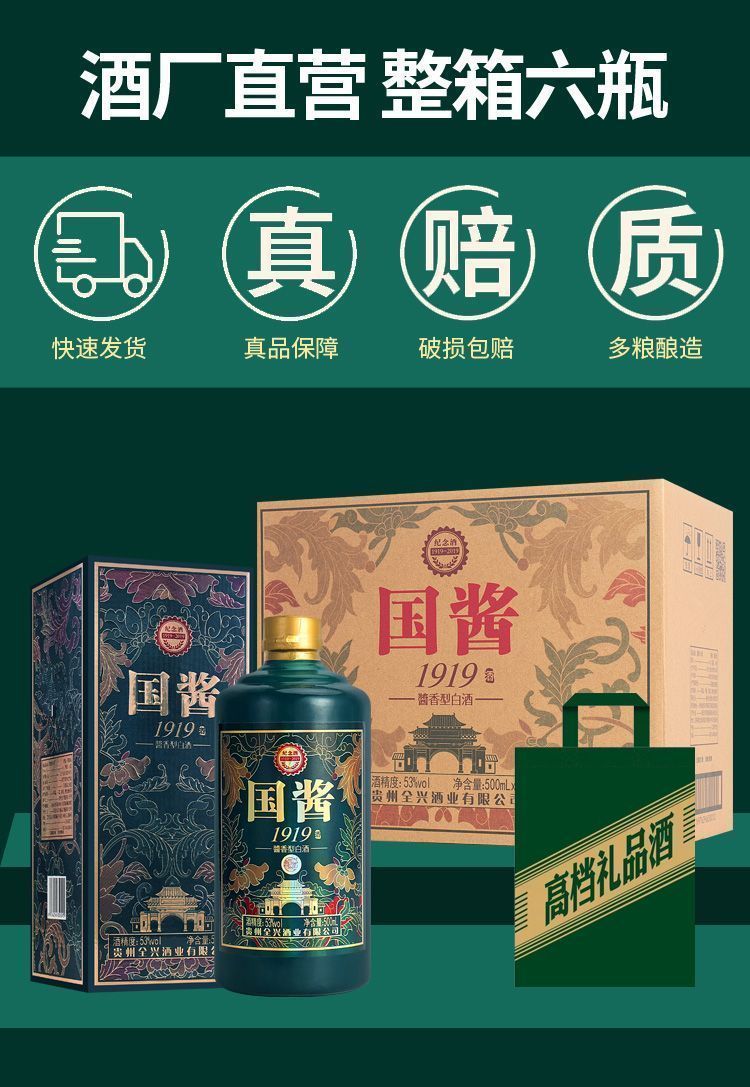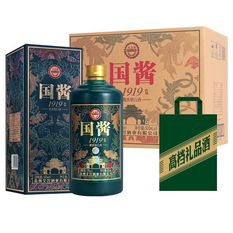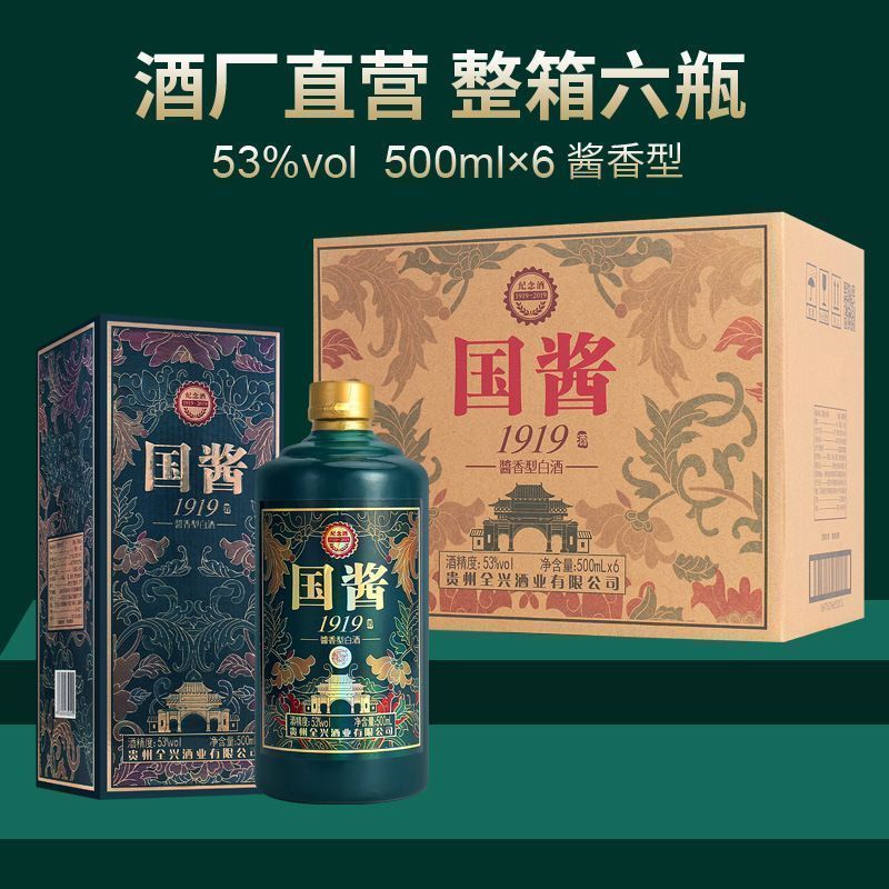 屹匠贵州国酱1919酱香型白酒纯粮食酒水高档礼盒53度500ml*6瓶