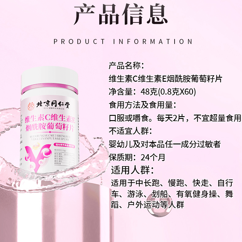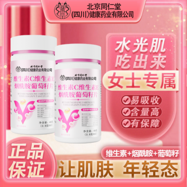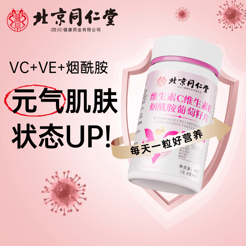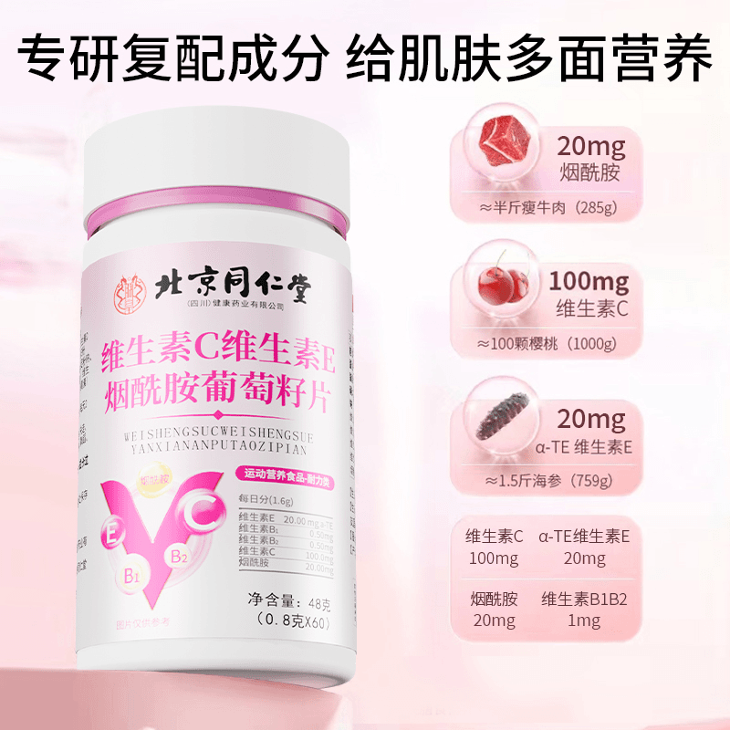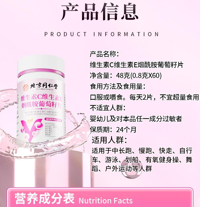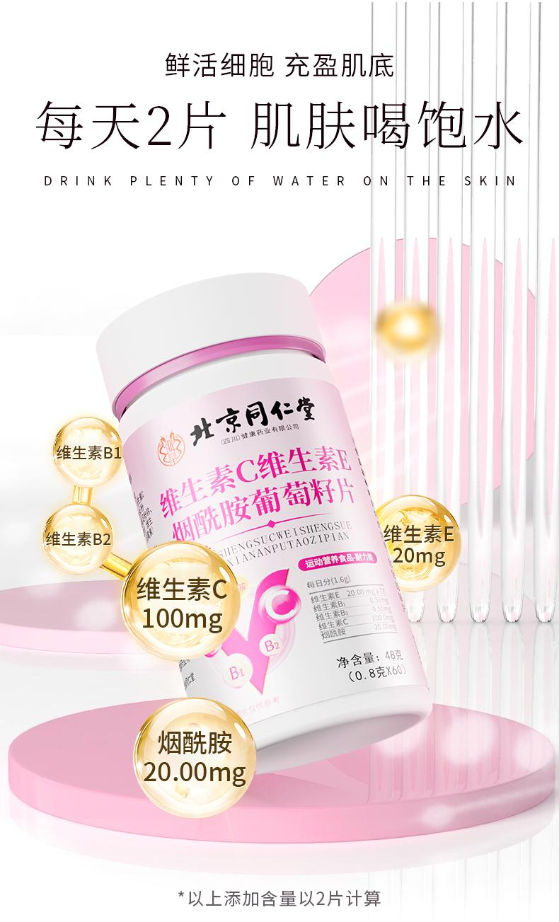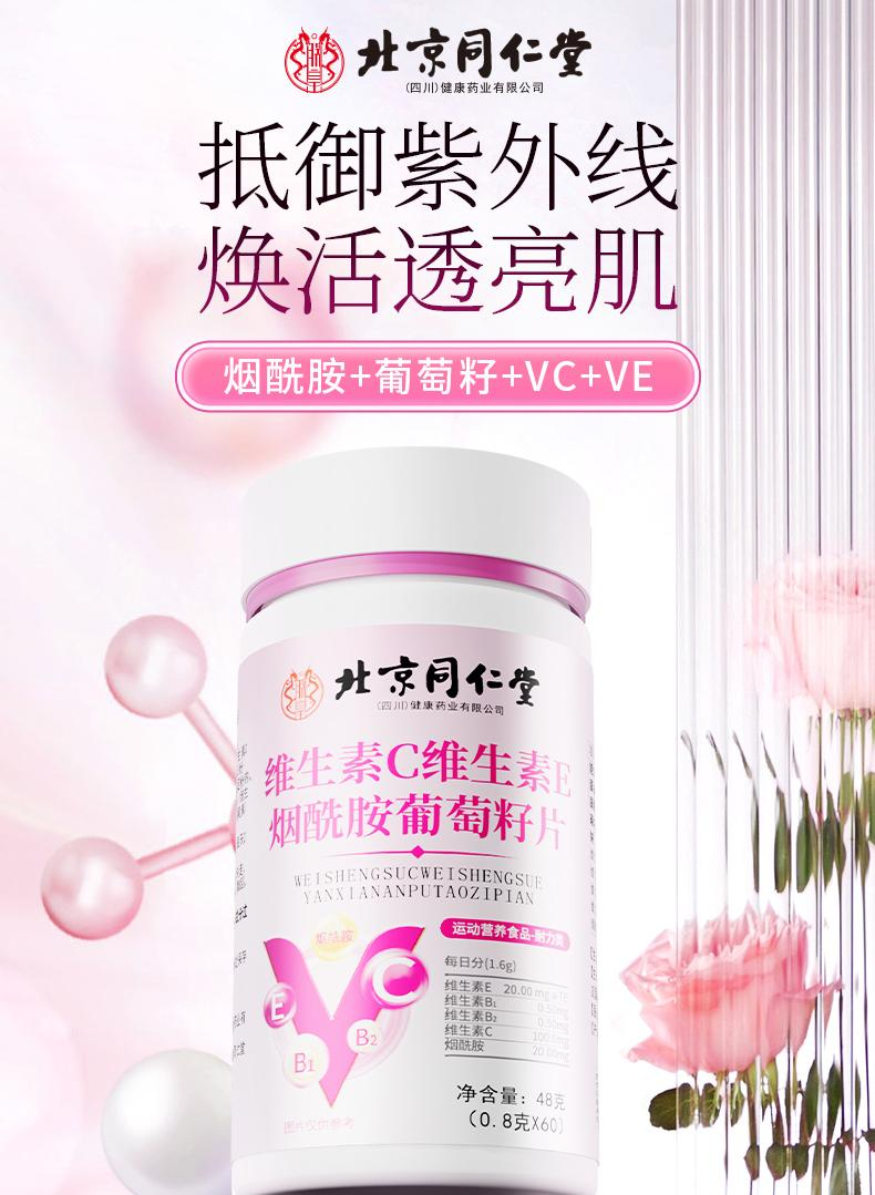 北京同仁堂朕皇维生素C维生素E烟酰胺VC葡萄籽运动营养咀嚼片60片