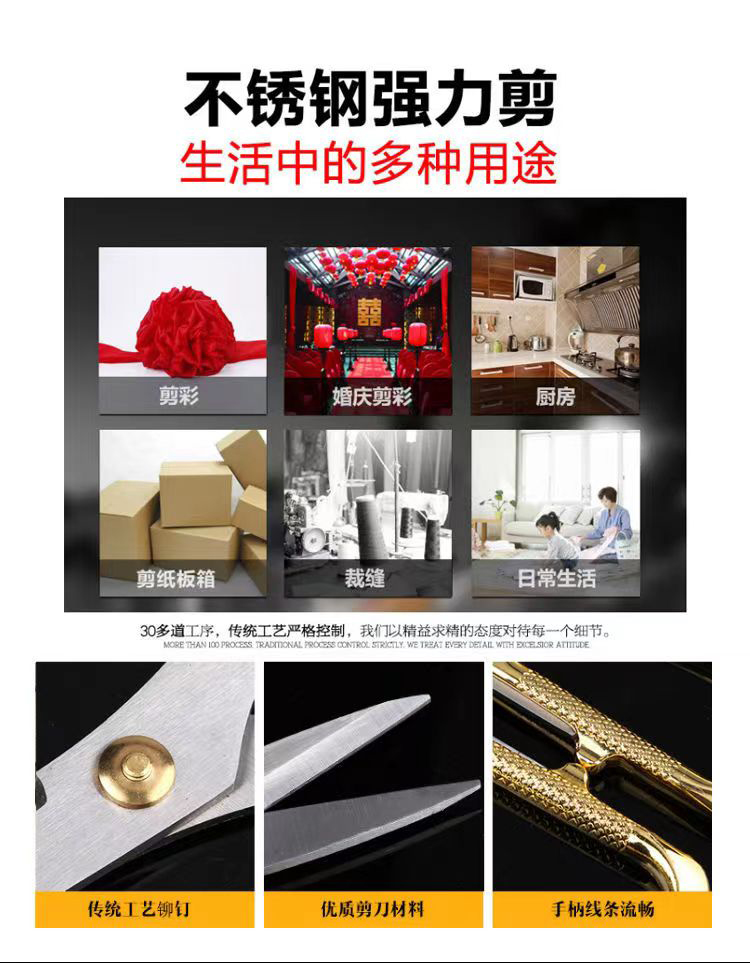 【外贸品质】日式多功能剪刀家用不锈钢加厚剪刀厨房用手工办公用