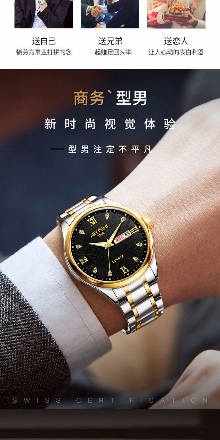 瑞士品牌专柜正品进口全自动男士手表时尚韩版夜光防水非机械表男