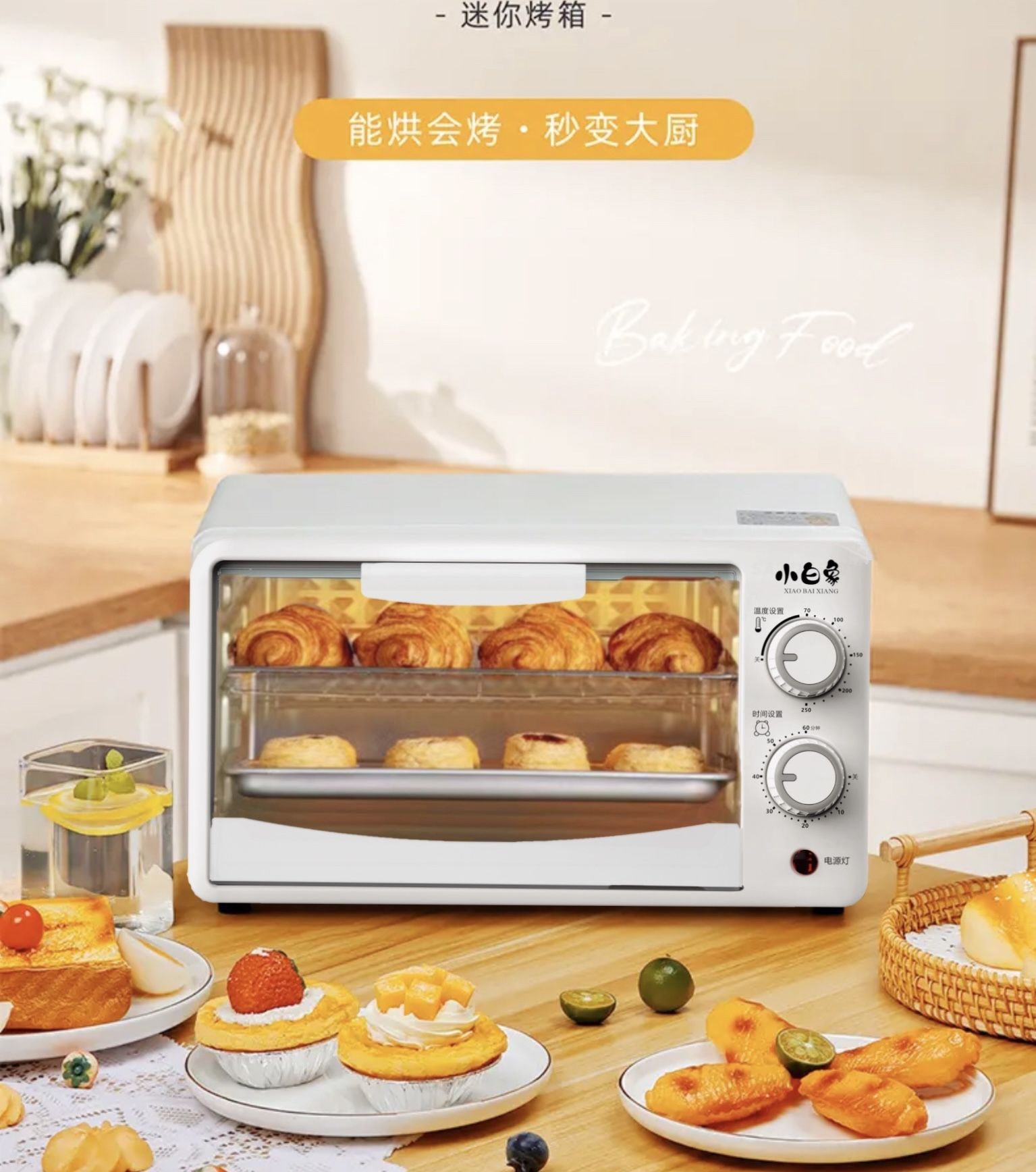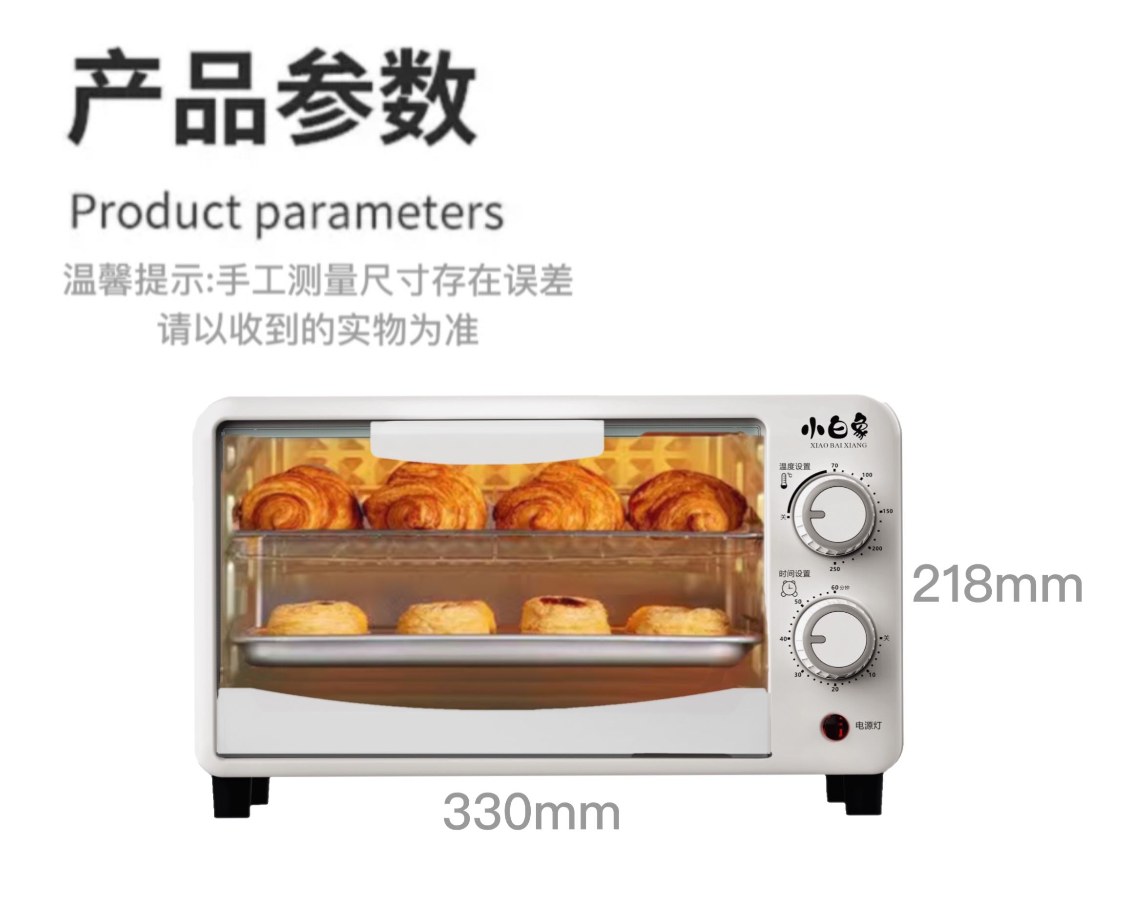 正品小白象12升电烤箱大容量多功能烘焙礼品定时家用可视空气炸K1