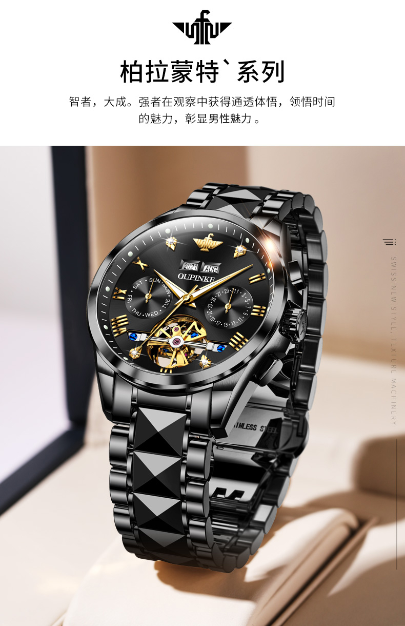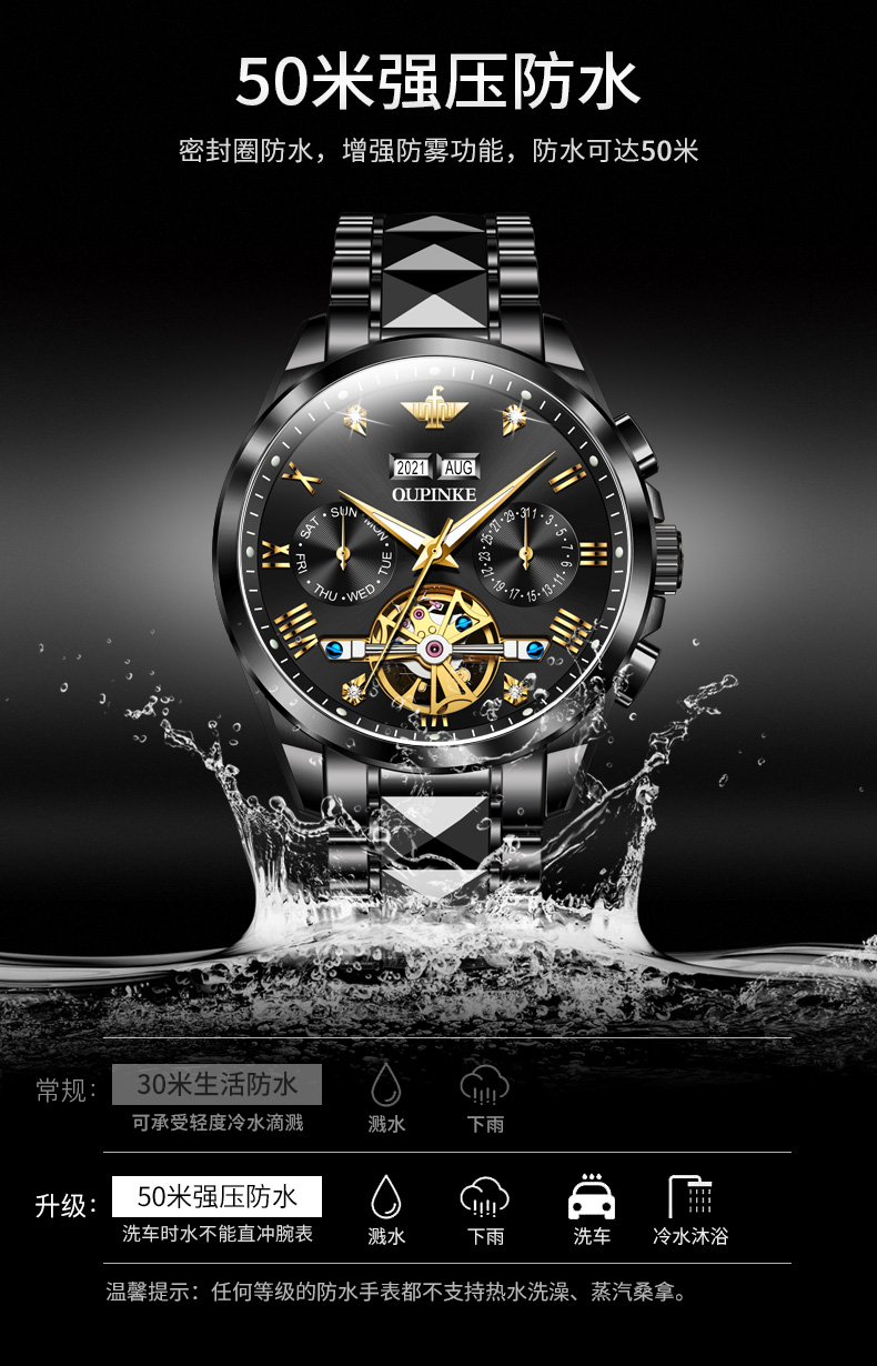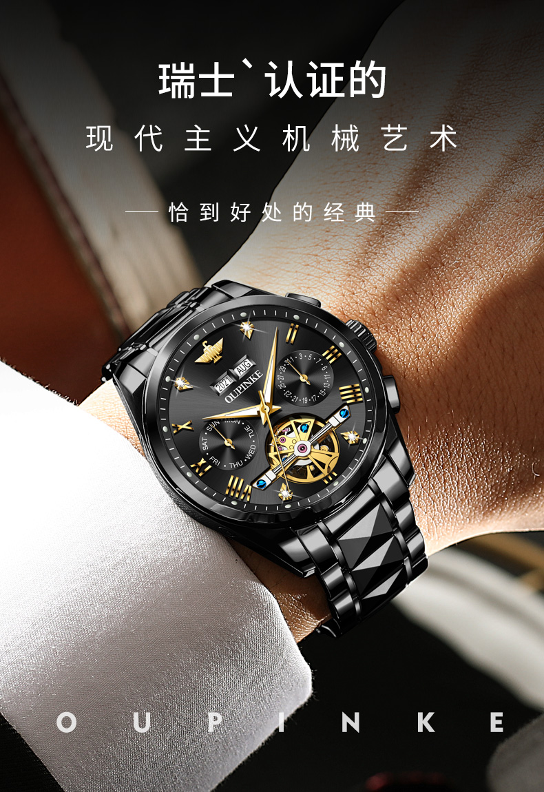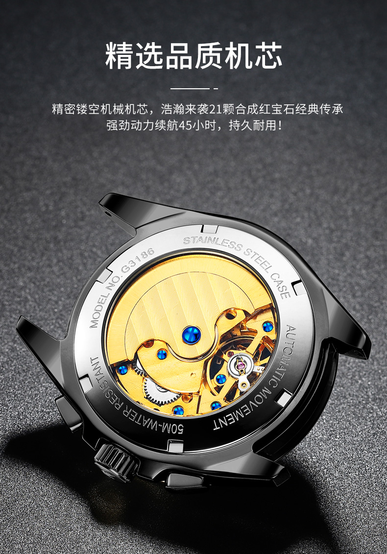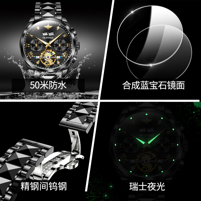 黑武士手表男士机械表瑞士名表正品全自动防水男表夜光商务男腕表