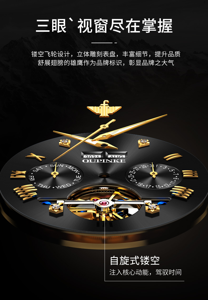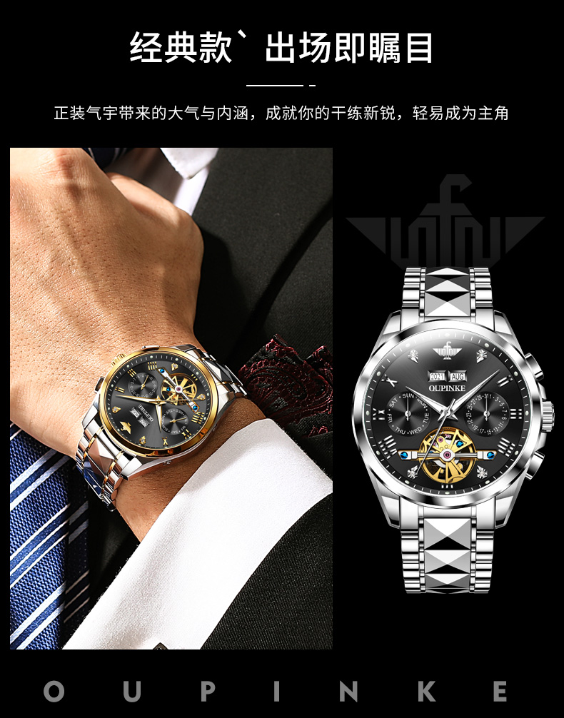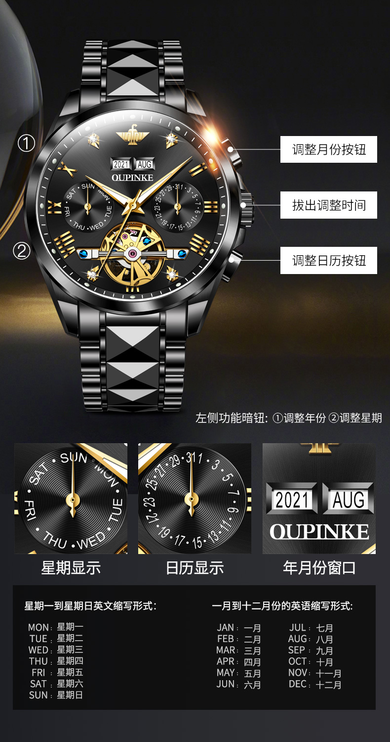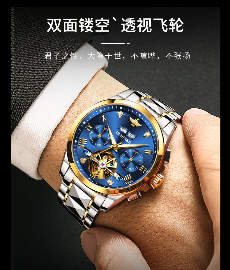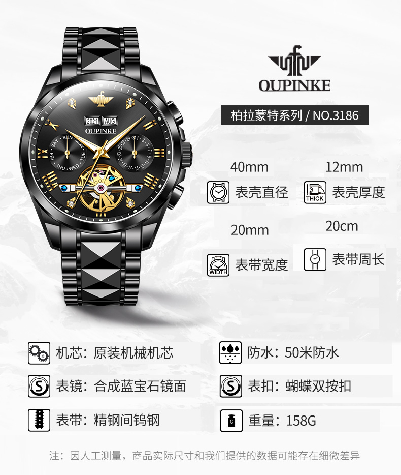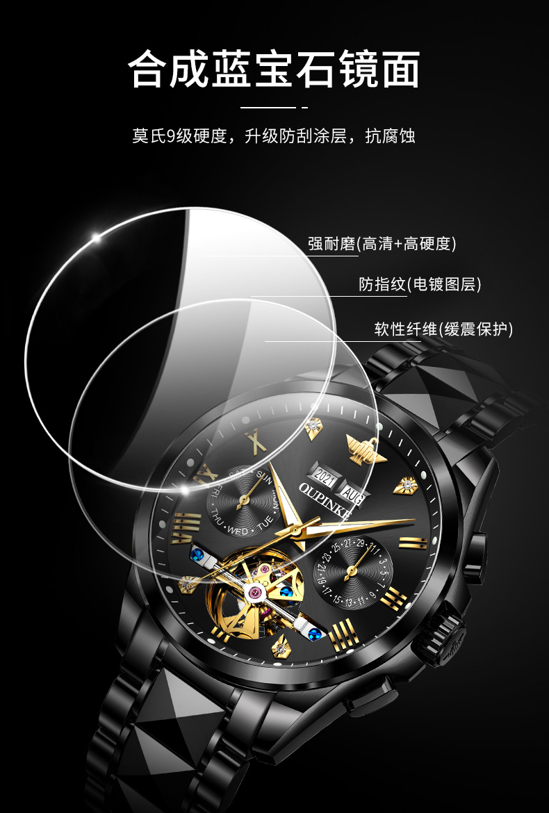 黑武士手表男士机械表瑞士名表正品全自动防水男表夜光商务男腕表
