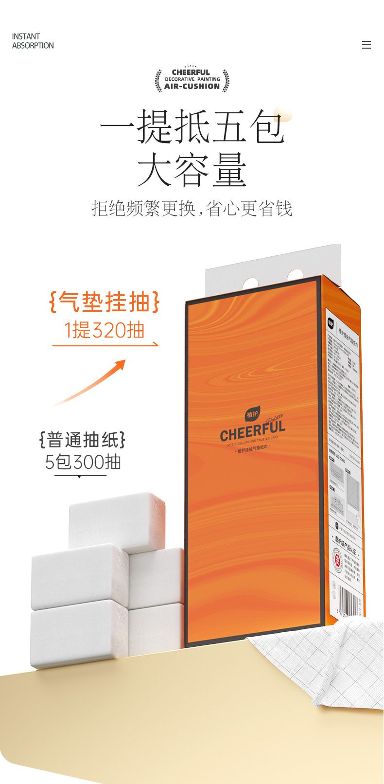 植护挂抽纸巾悬挂式抽纸家用大包餐巾纸卫生纸整箱面巾纸320抽/提