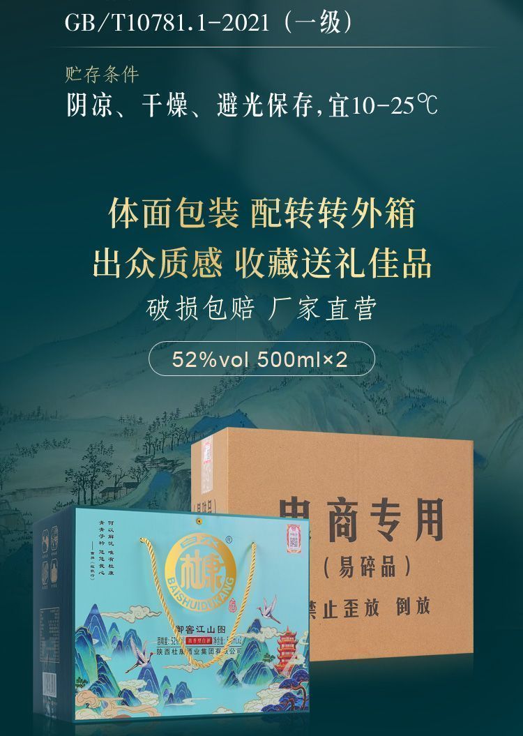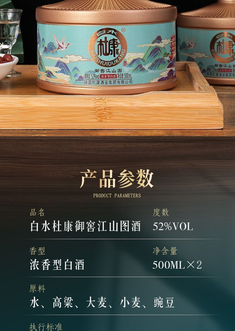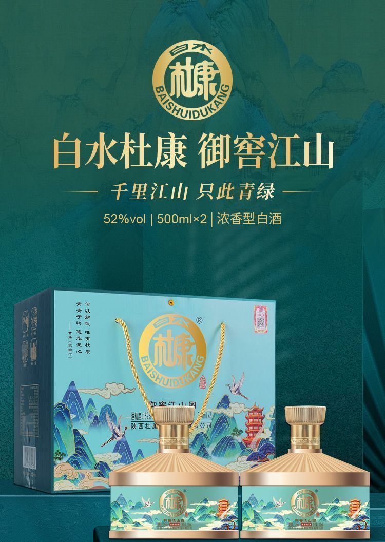 白水杜康御窖江山图手提礼盒装纯粮食浓香型优级白酒52度500ml*2
