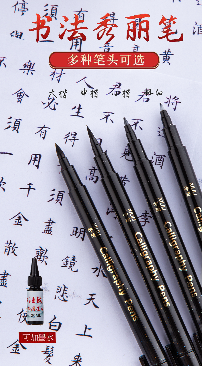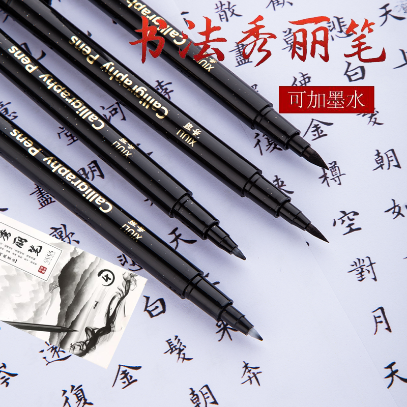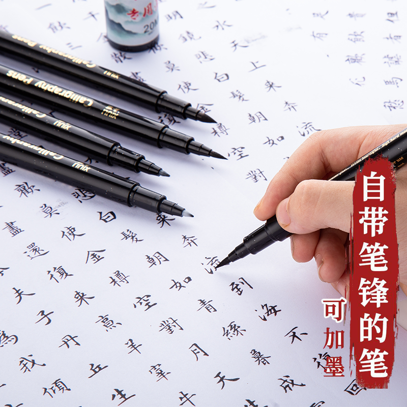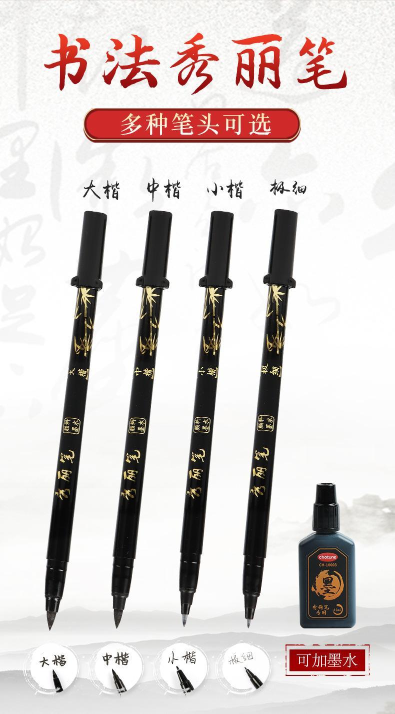 9.99元【4支笔+1瓶墨水】秀丽笔自带笔锋软毛练字笔楷写生素描练字