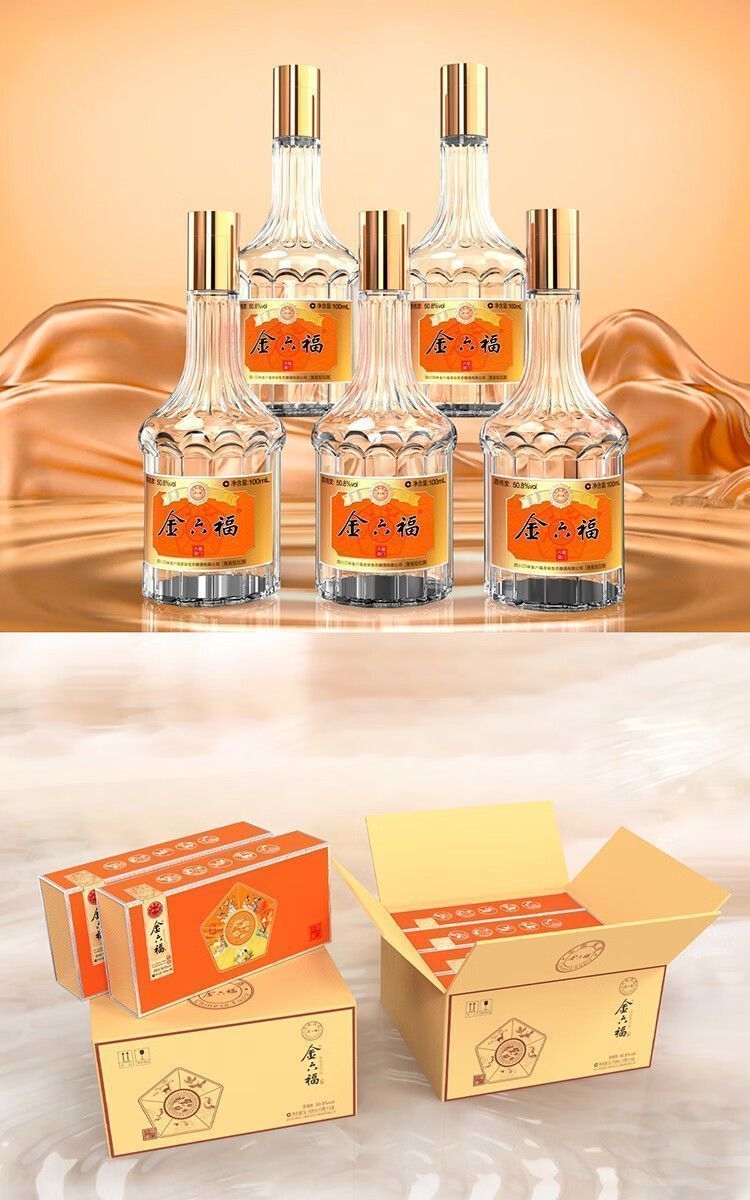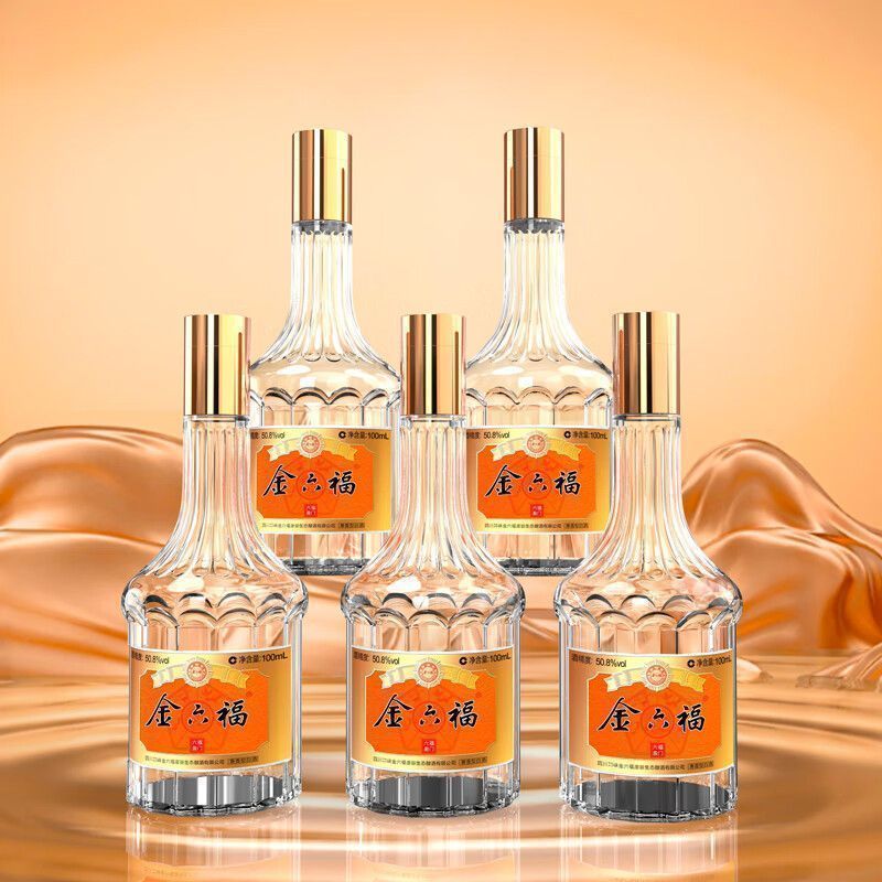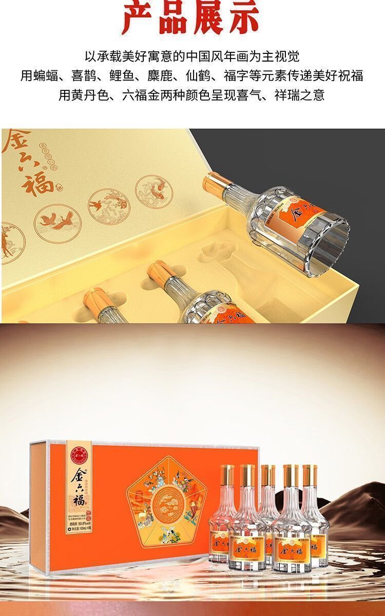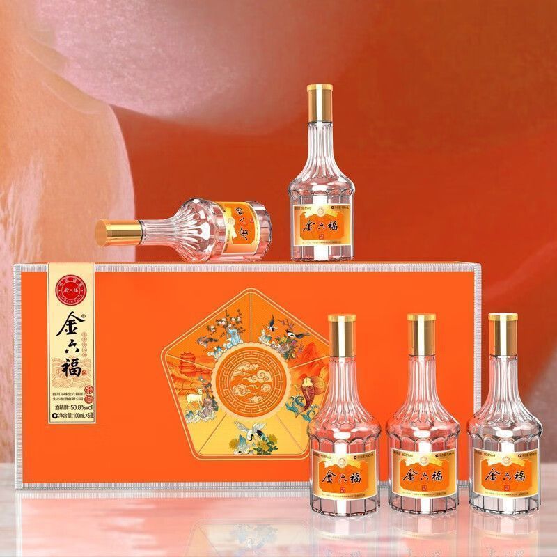 金六福六福盈门礼盒装 兼香型白酒 送礼宴请 酿酒50.8度100ml*5