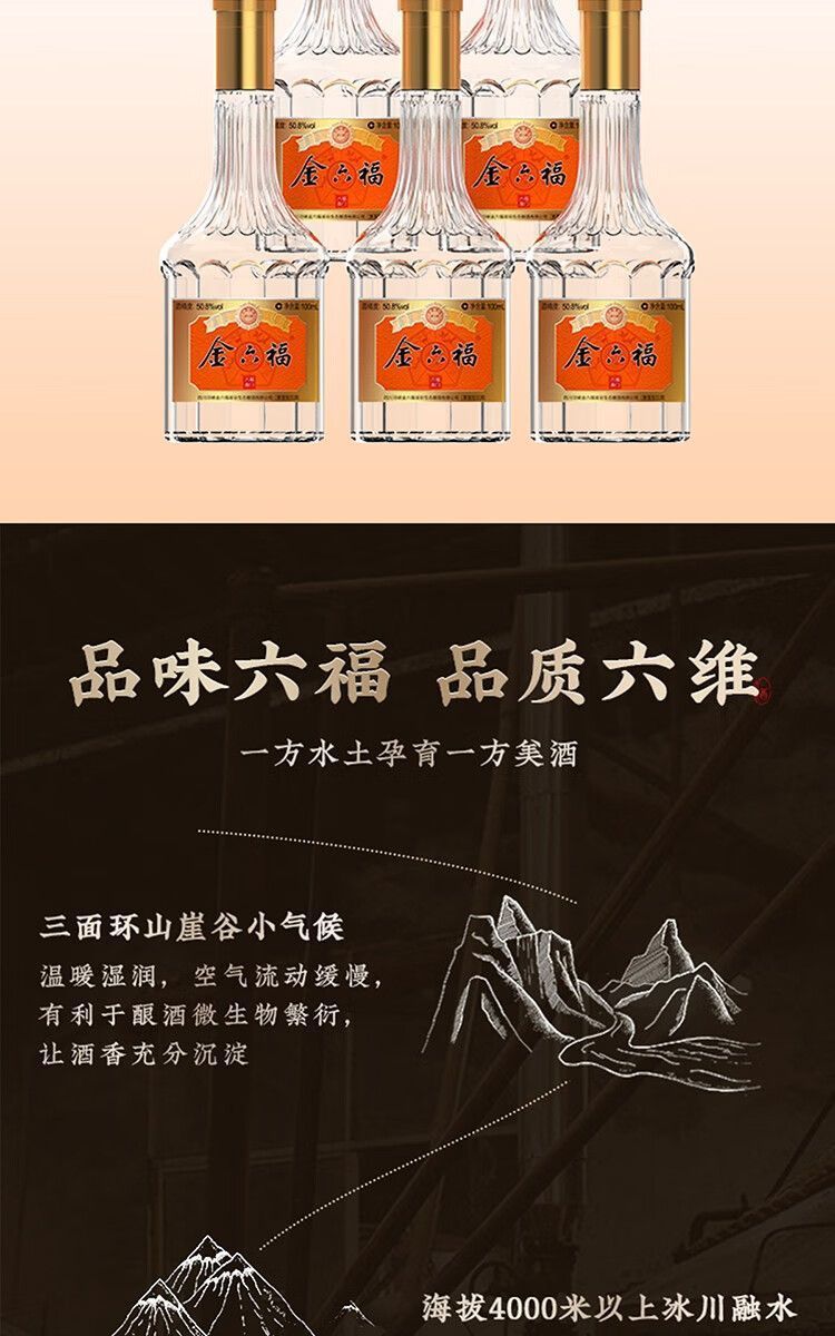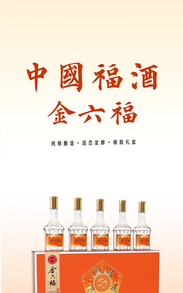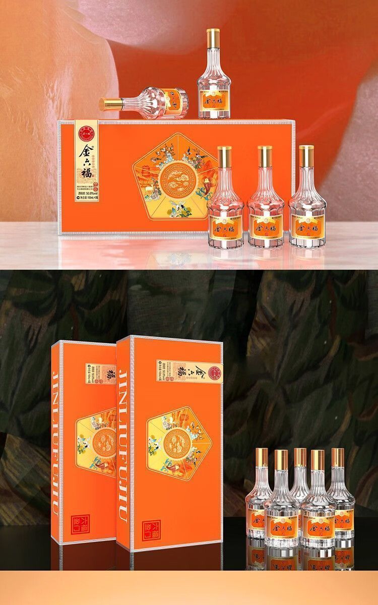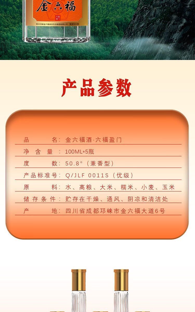 金六福六福盈门礼盒装 兼香型白酒 送礼宴请 酿酒50.8度100ml*5
