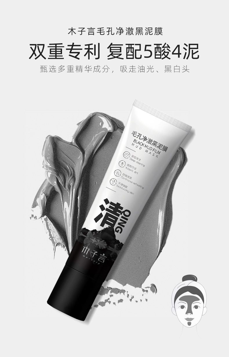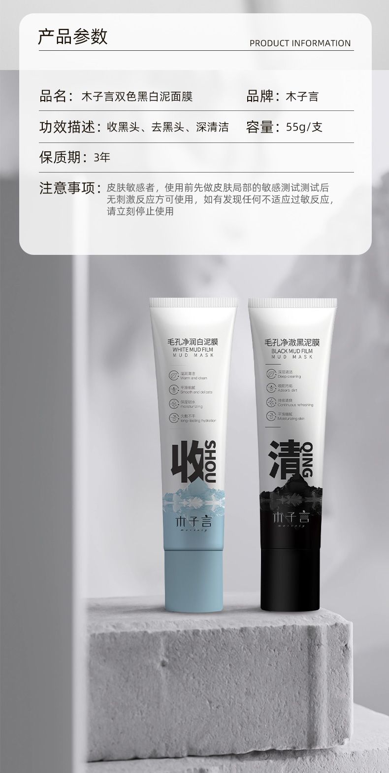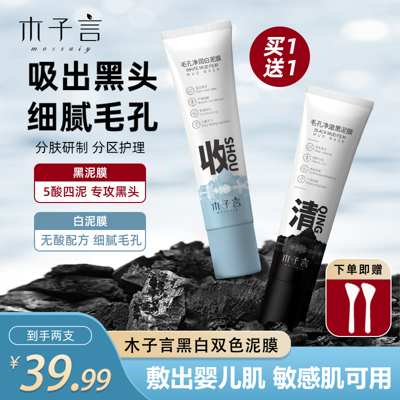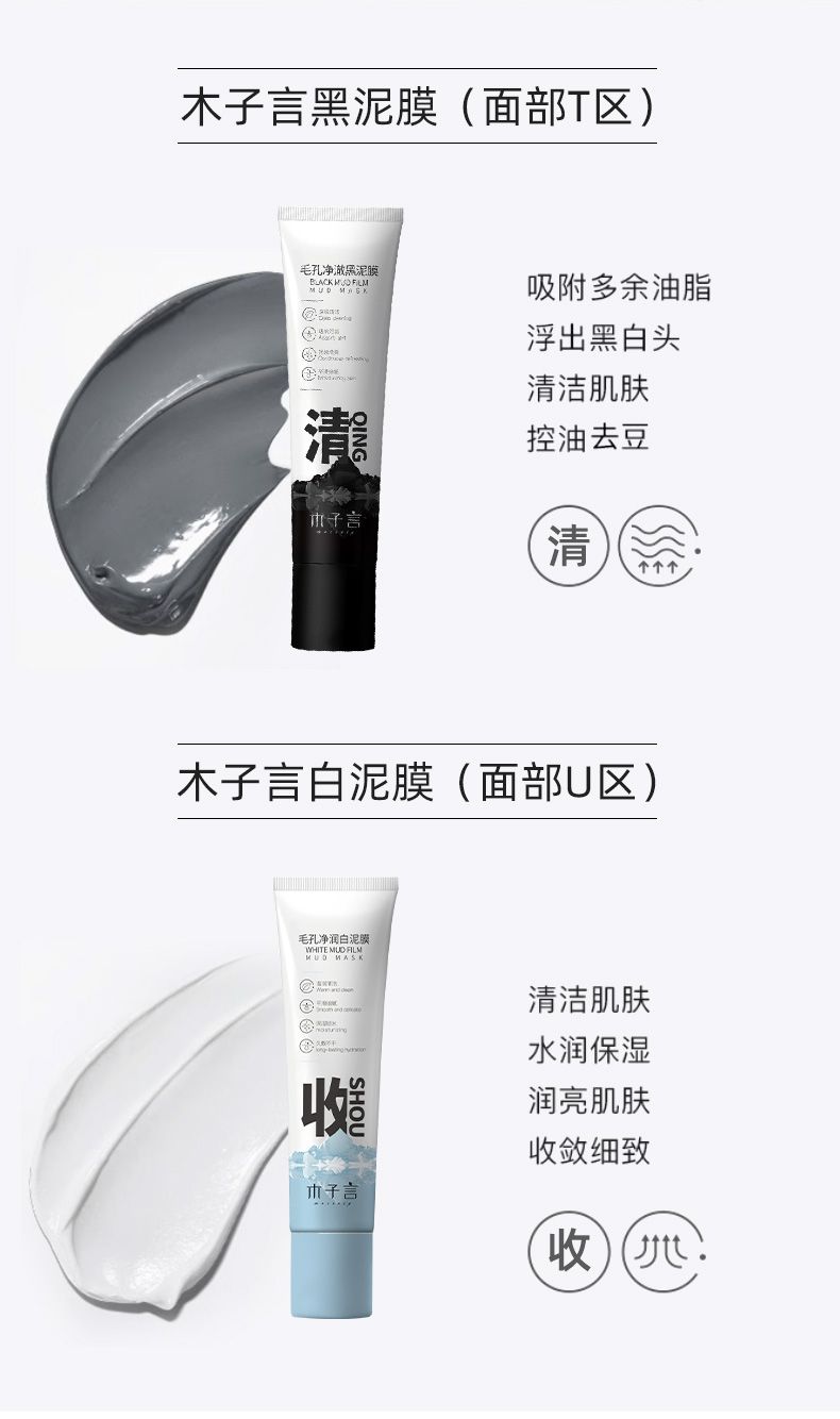 【专攻黑头 细腻毛孔】买1送1木子言黑白双色泥膜深清洁补水细腻 D1