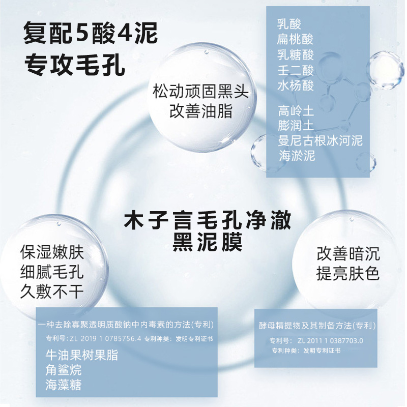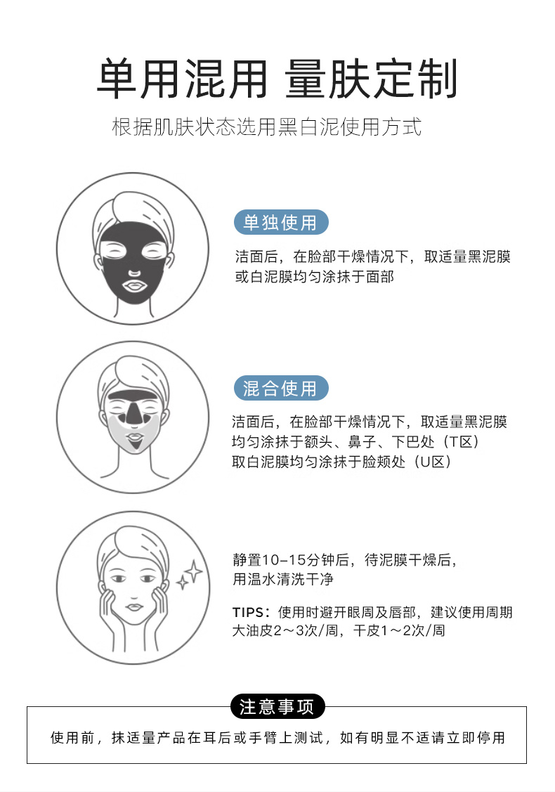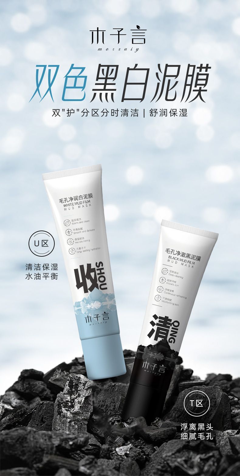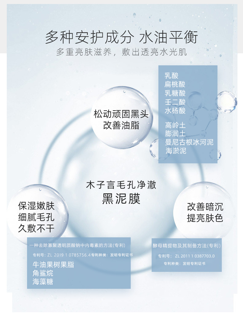 【专攻黑头 细腻毛孔】买1送1木子言黑白双色泥膜深清洁补水细腻 D1