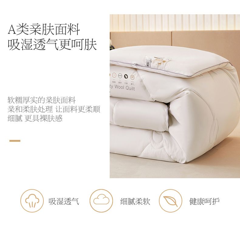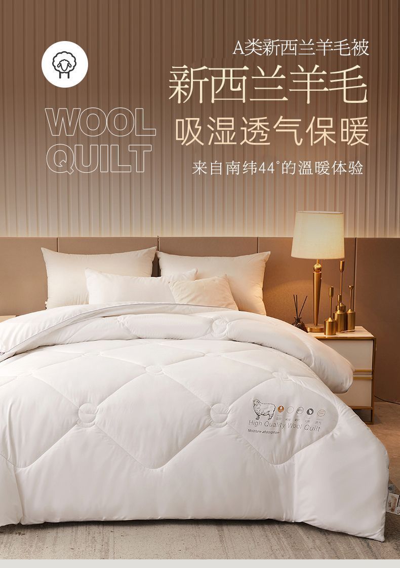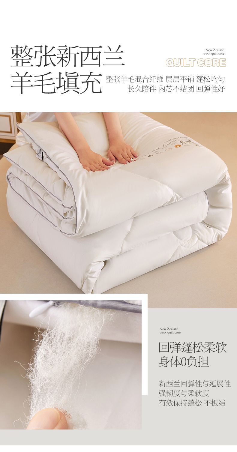 - 官方正品【已质检】白色150x200cm冬被【约6斤-新西兰进口100%羊毛】