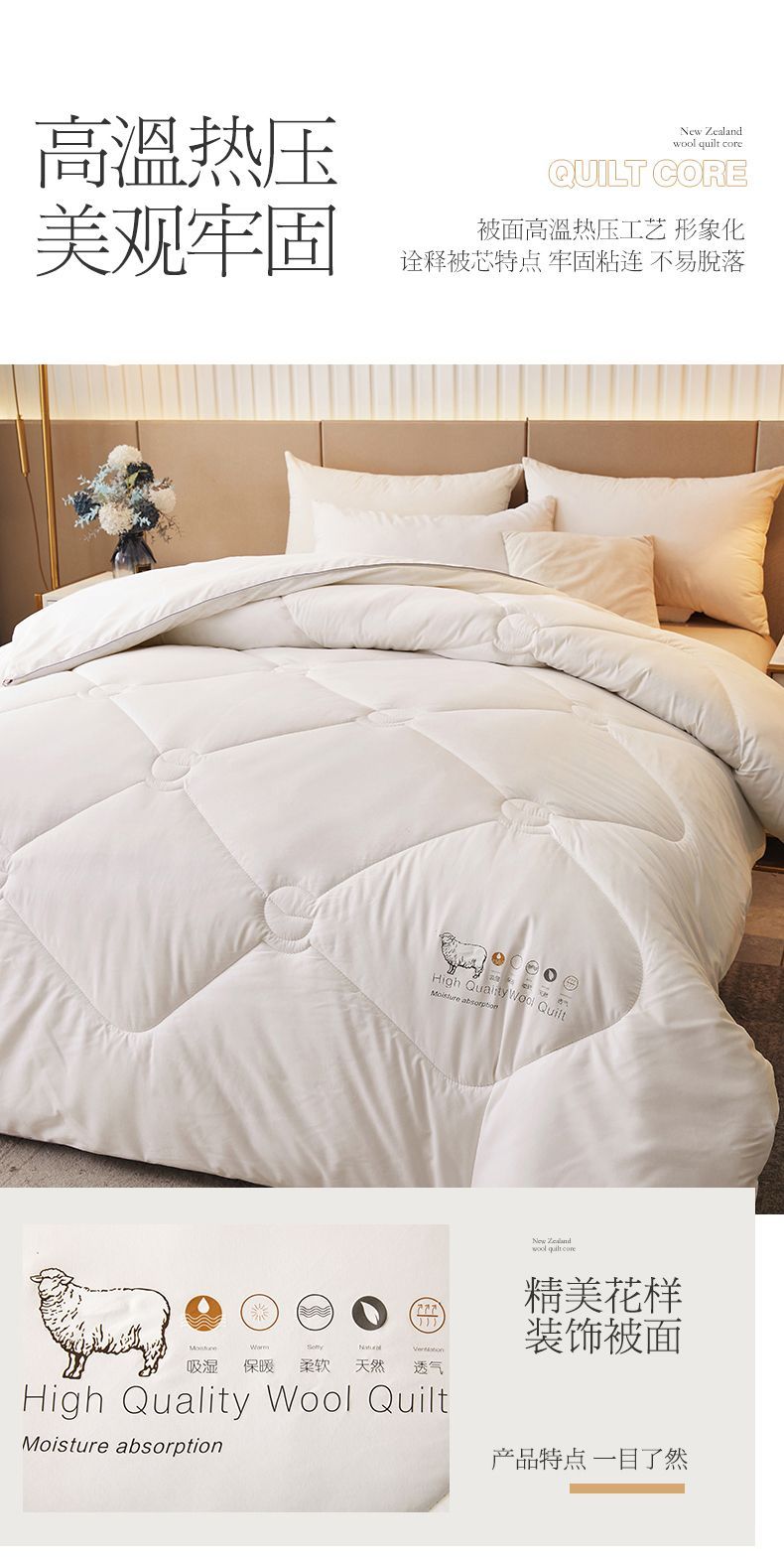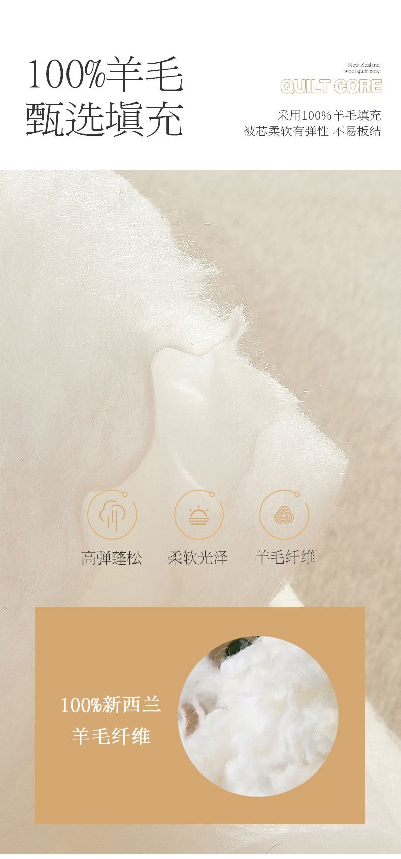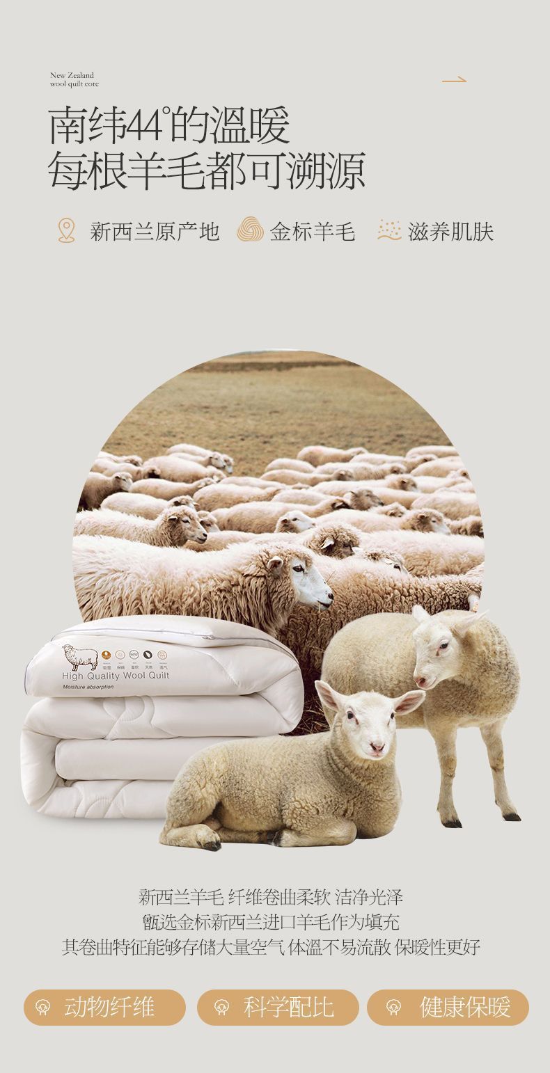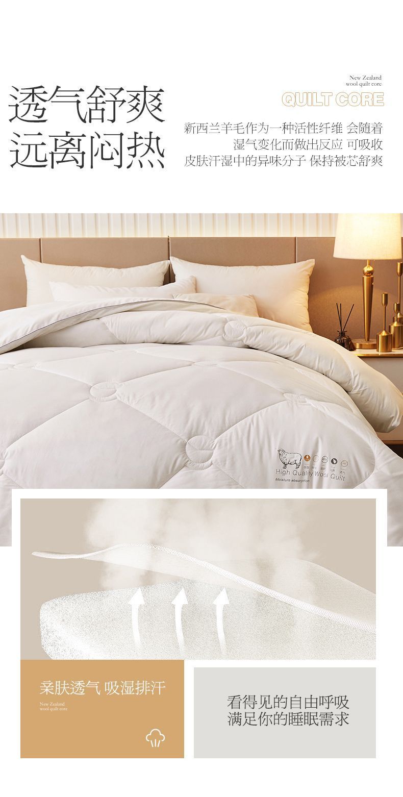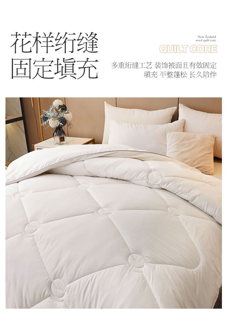 - 官方正品【已质检】白色200x230cm春秋被【约5斤-新西兰进口100%羊毛】