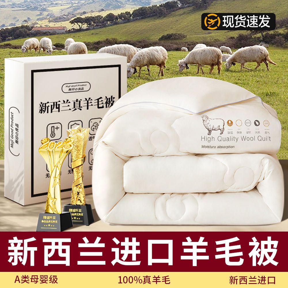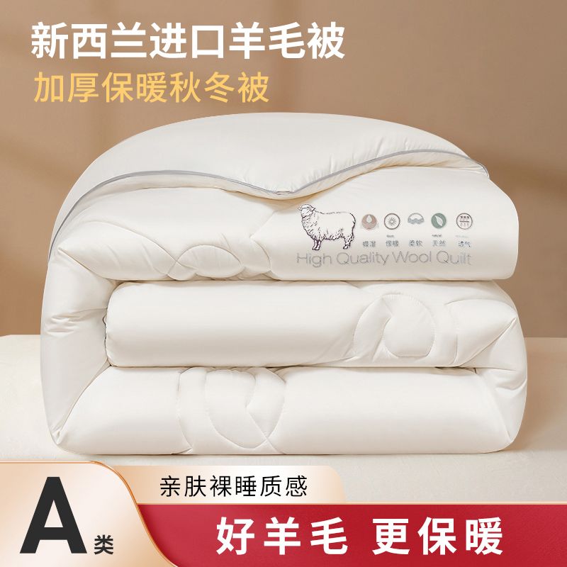 - 官方正品【已质检】白色150x200cm厚冬被【约8斤-新西兰进口100%羊毛】