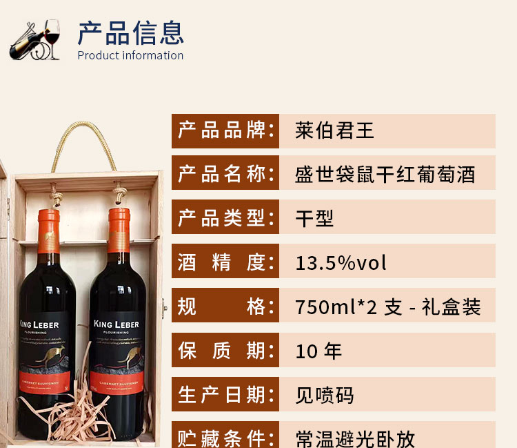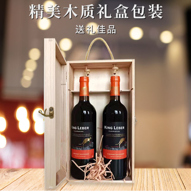 【双支木盒装】盛世袋鼠干红葡萄酒 礼盒装送礼果香浓郁