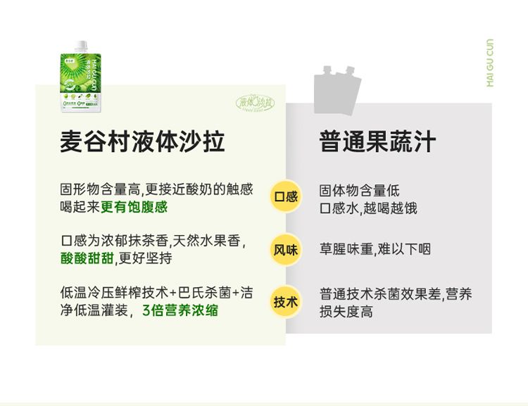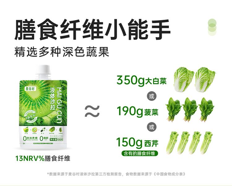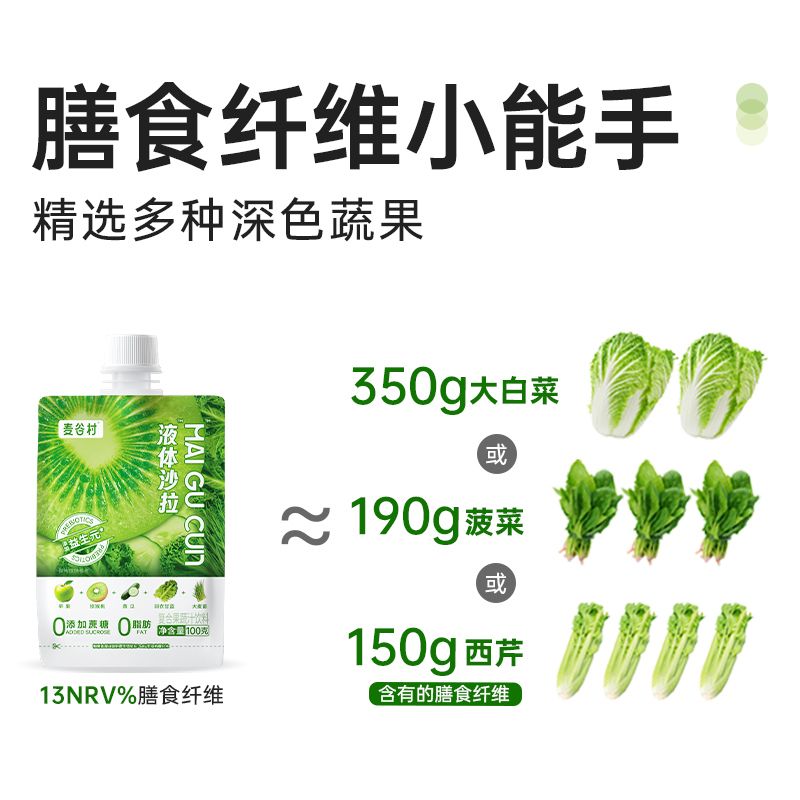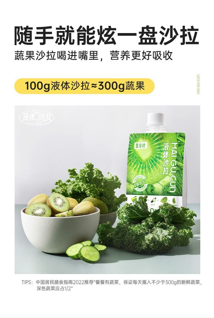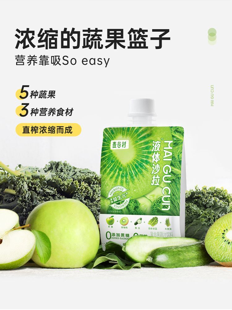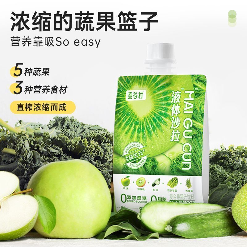 麦谷村液体沙拉代餐轻液断配料干净益生元果蔬汁100g*3小袋/包sss