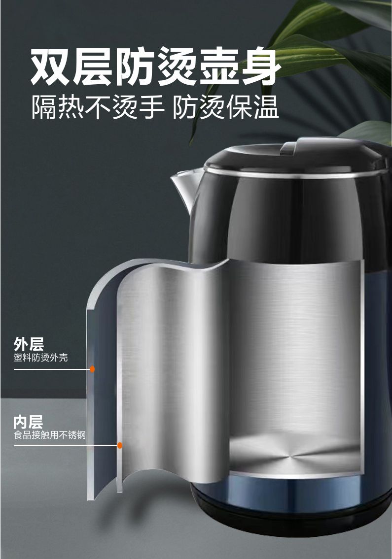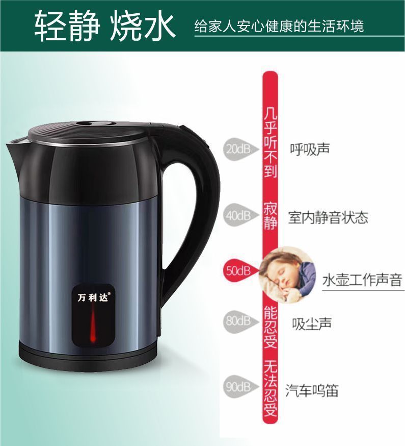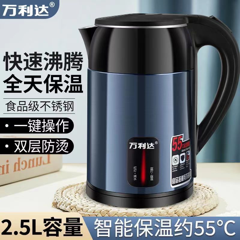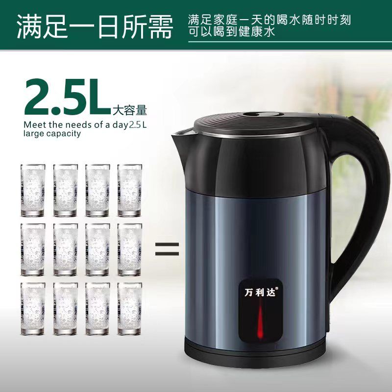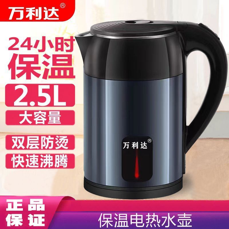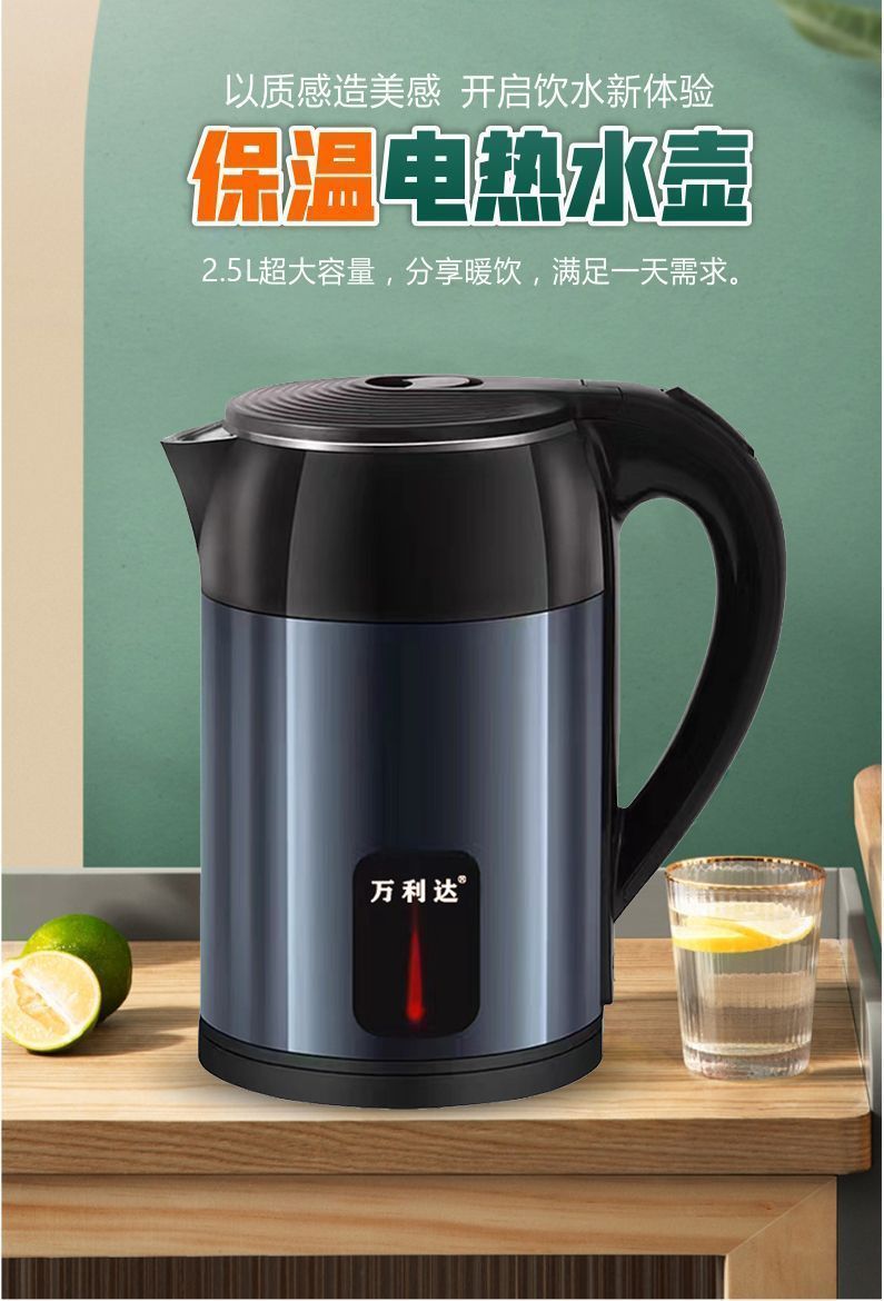 万利达快烧电热水壶烧水壶家用耐用双层防烫保温自动断电开水壶