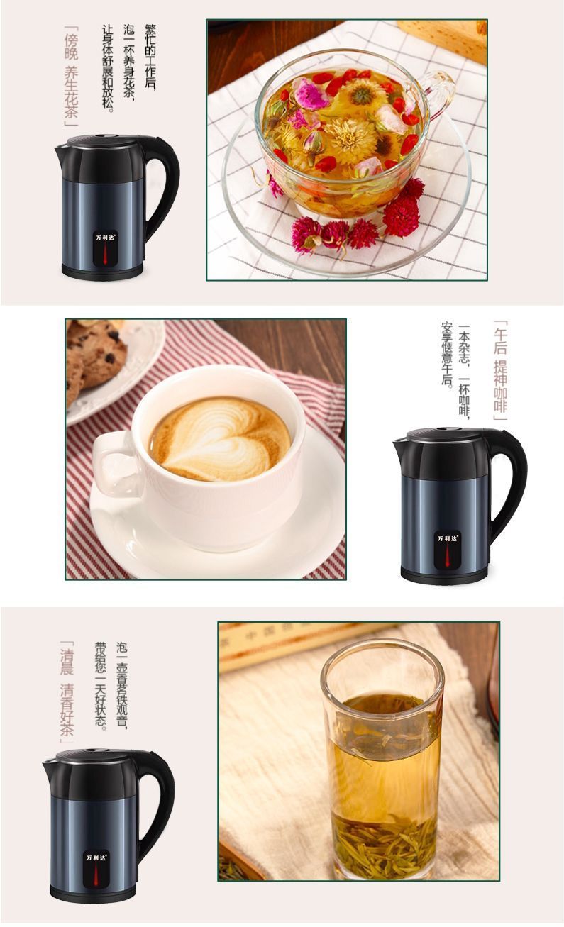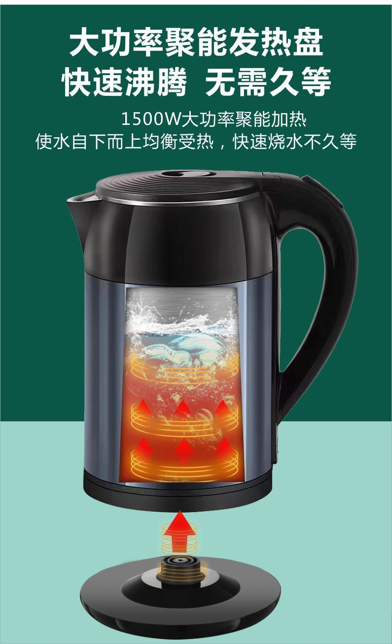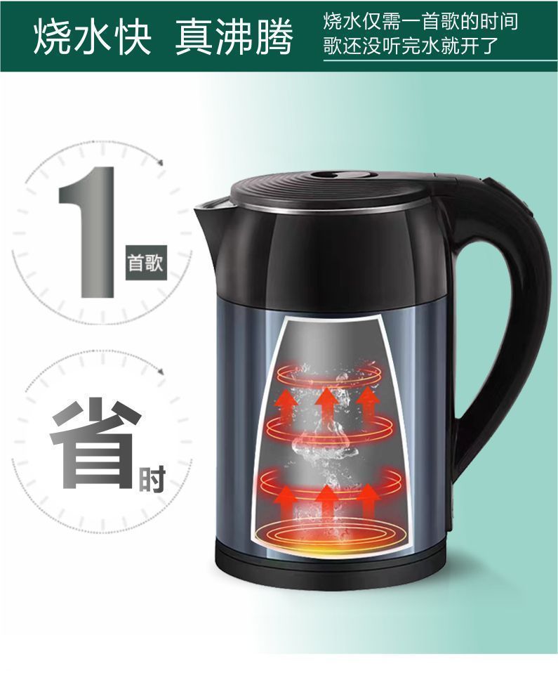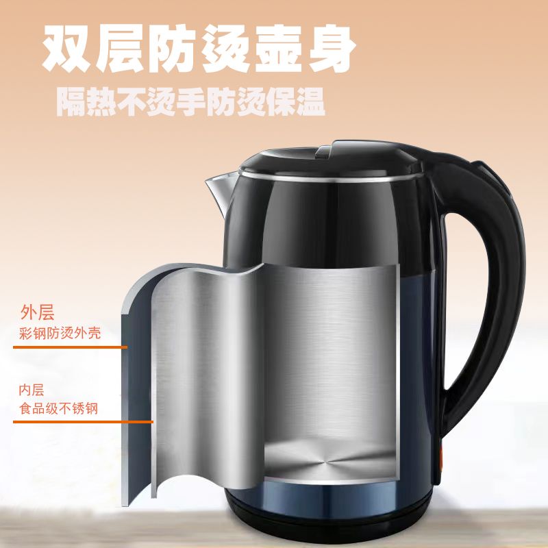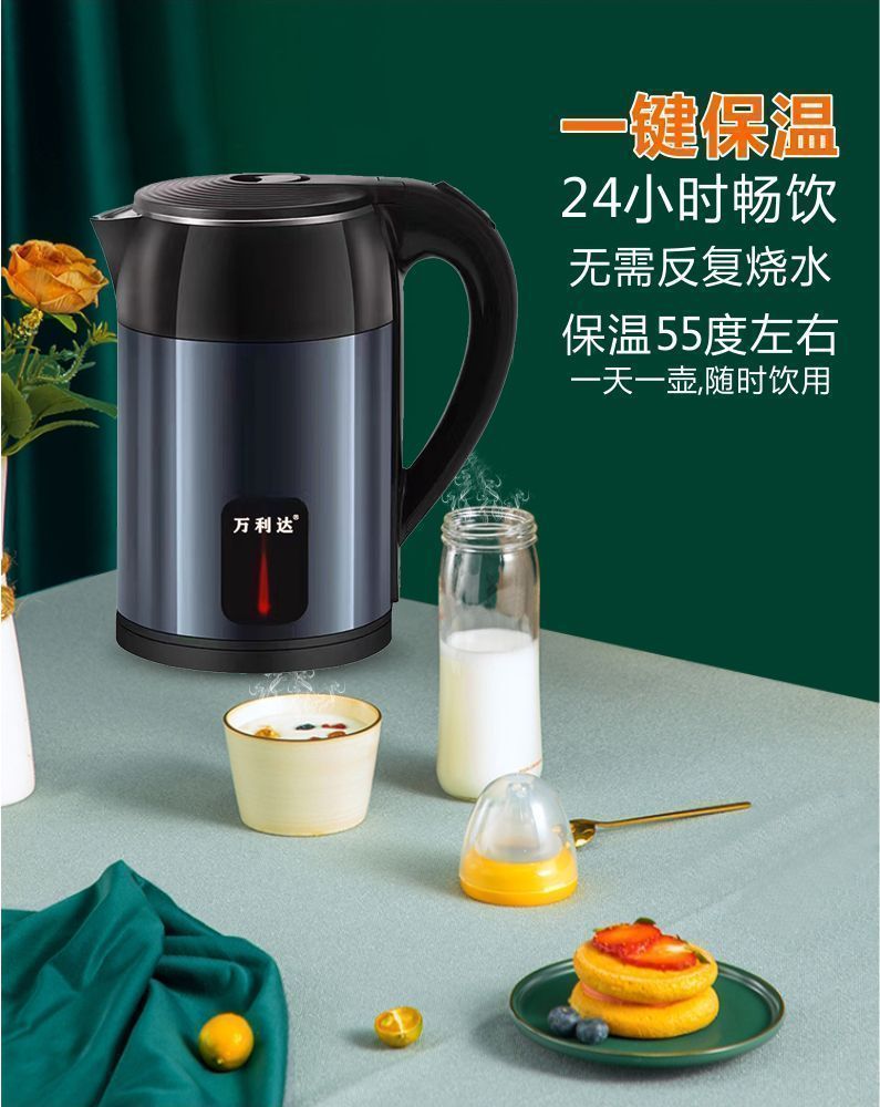 万利达快烧电热水壶烧水壶家用耐用双层防烫保温自动断电开水壶