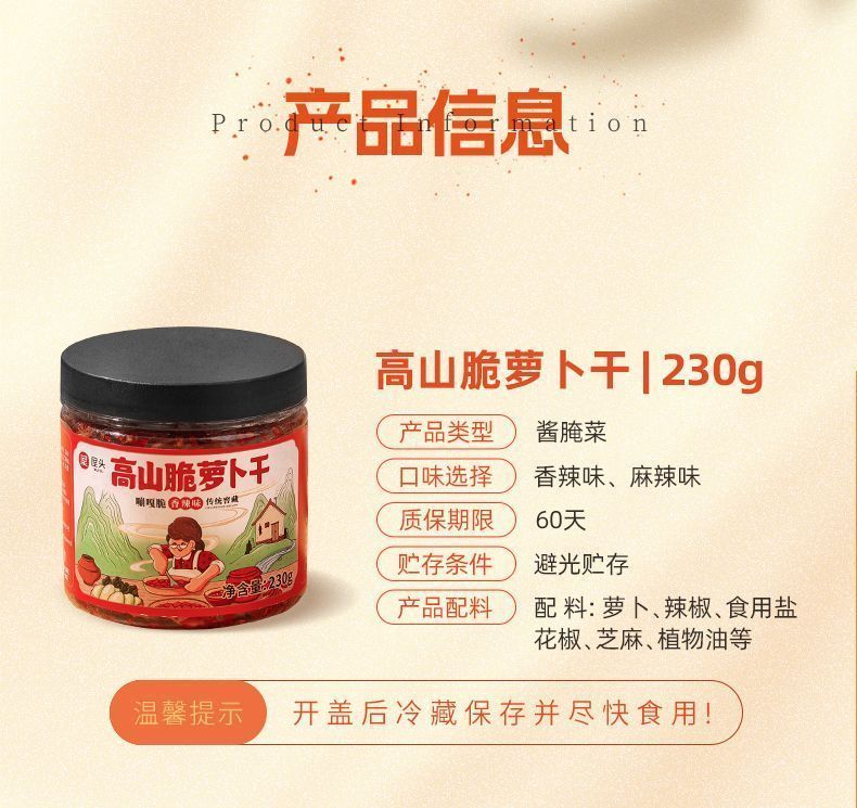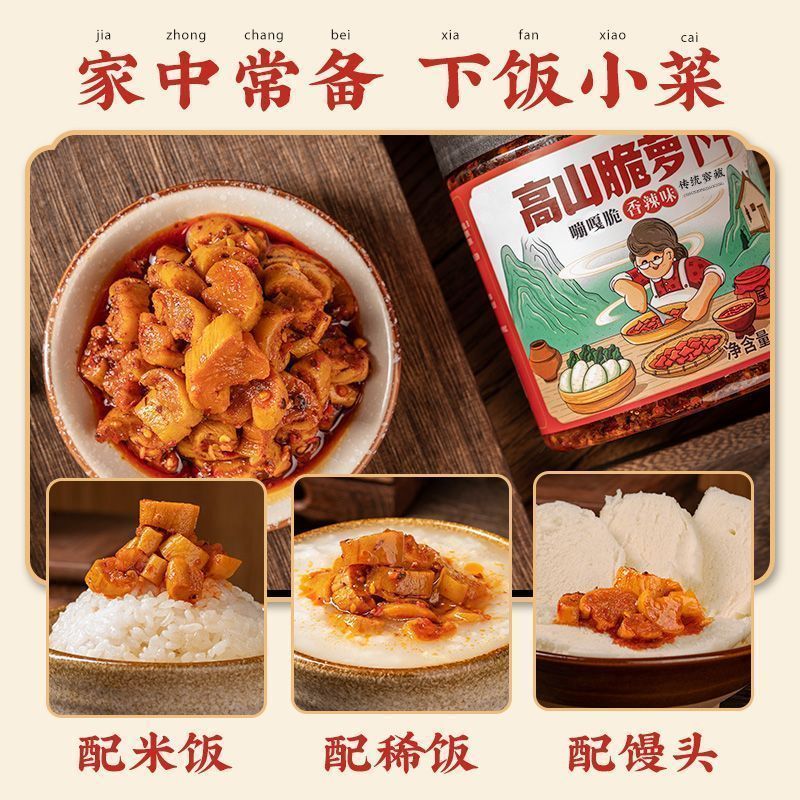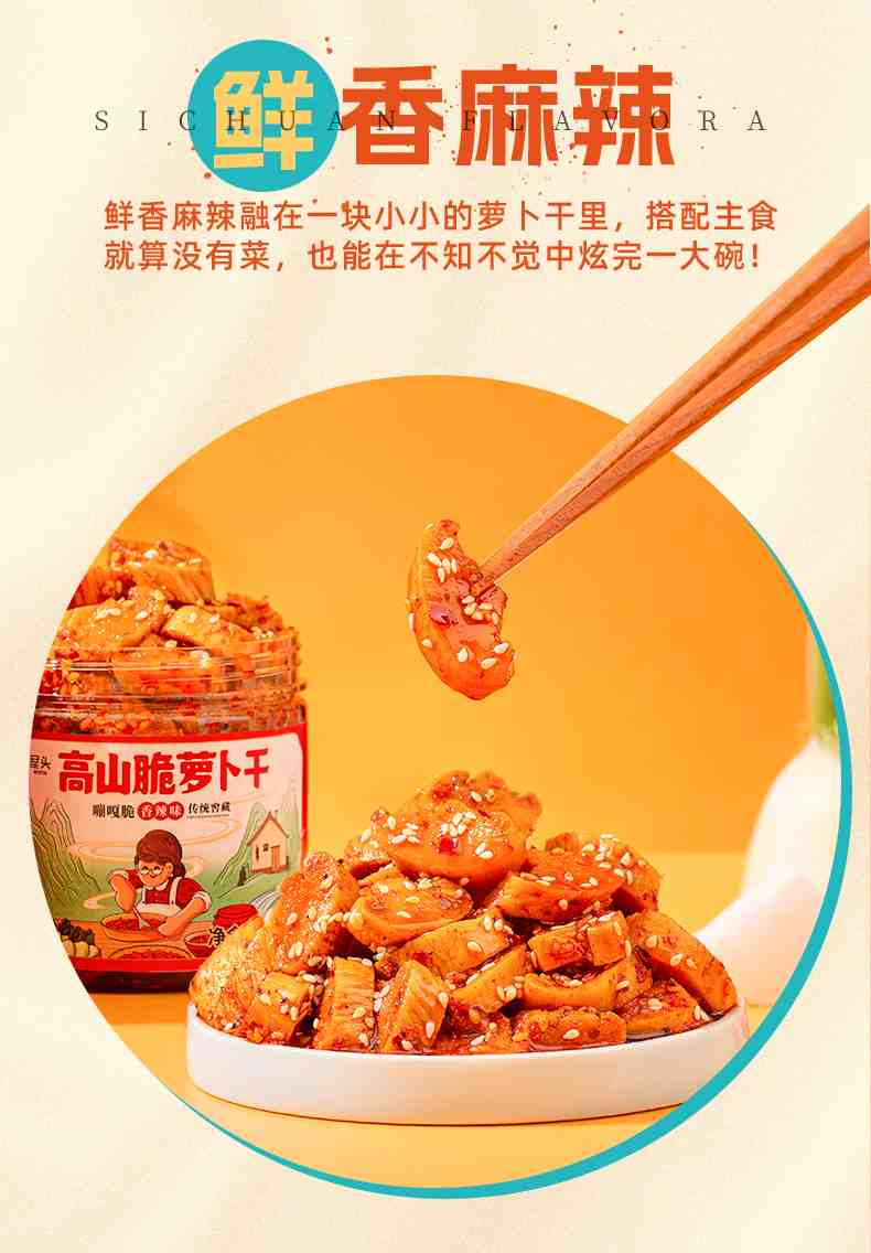屋头高山脆萝卜干榨菜麻辣下饭菜四川外婆酱菜甜辣萝卜丁泡菜CQQ