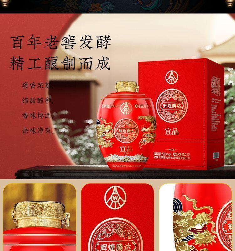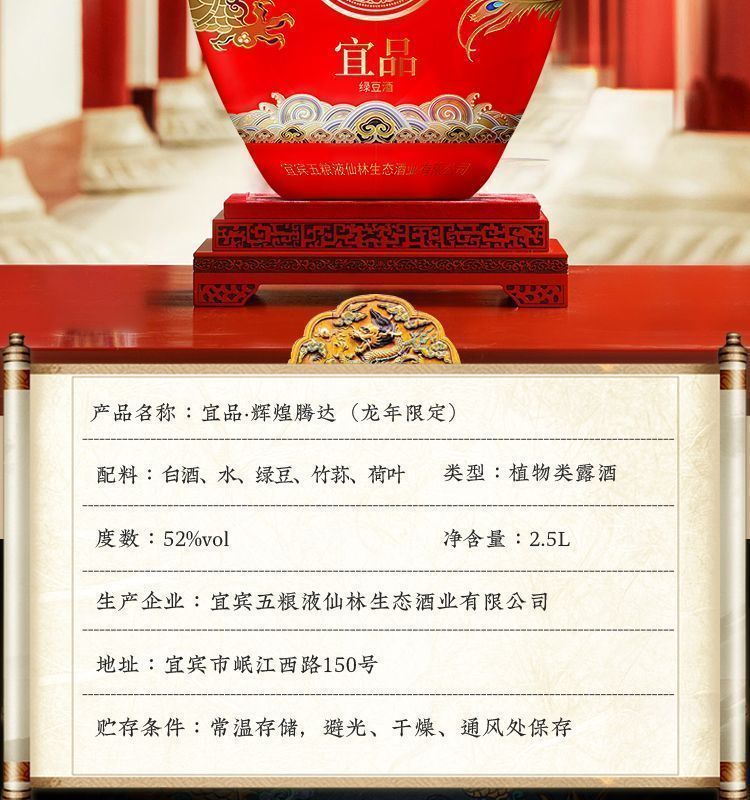 五粮液仙林生态 宜品辉煌腾达(龙年限定.红)5斤大坛酒52度2.5L