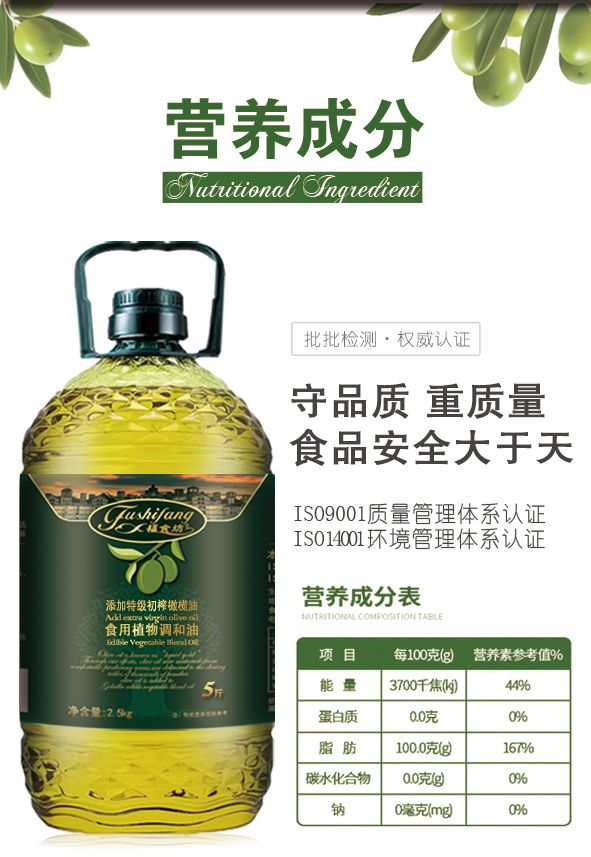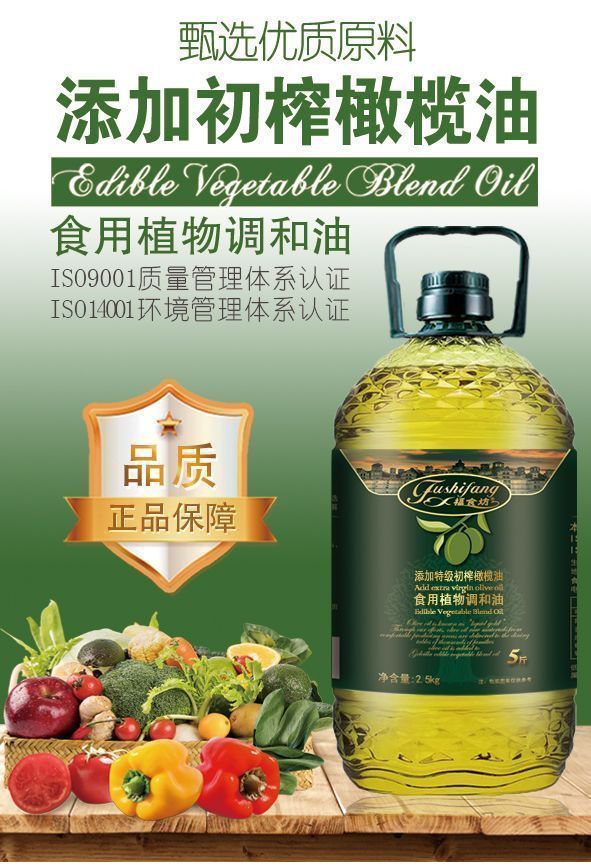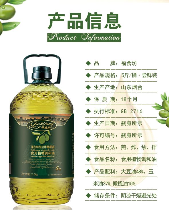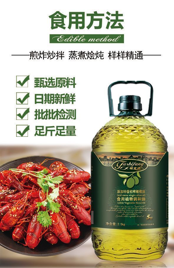 【家用炒菜】添加橄榄油食用油5斤家庭炒菜食用植物调和油2.7L桶装