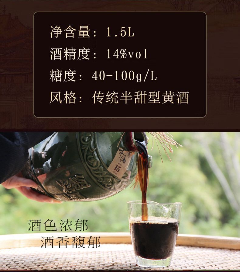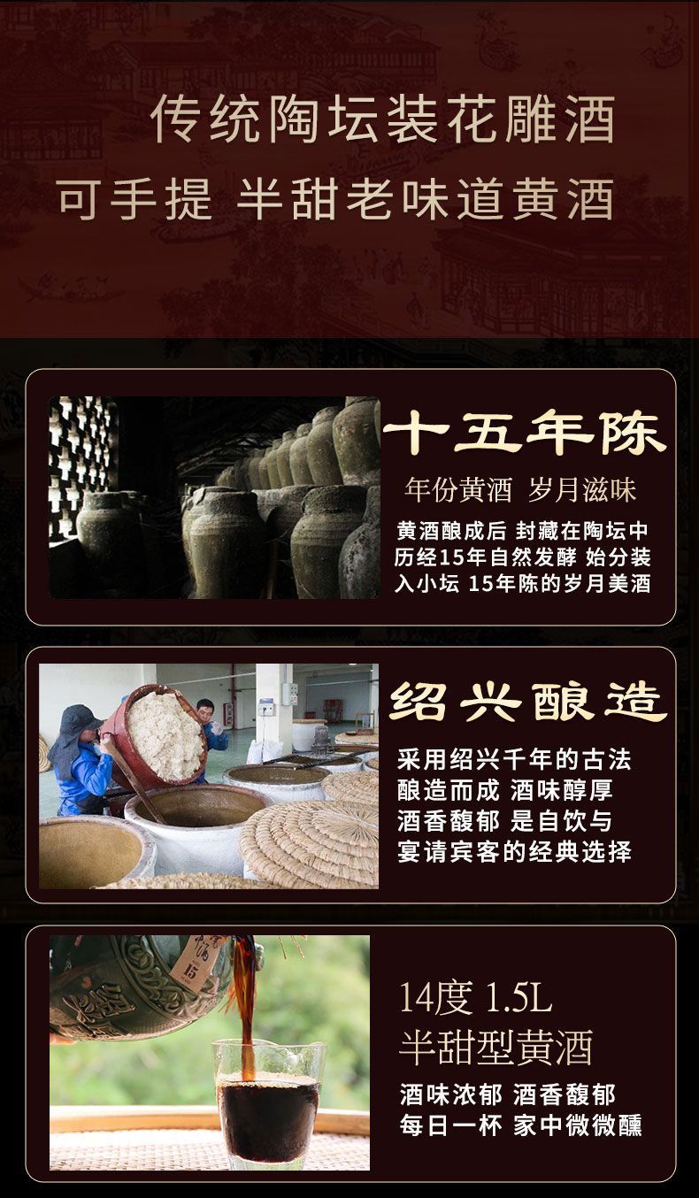 绍兴老黄酒十五年花雕酒传统手提礼坛经典半甜古法糯米酒1.5L大坛